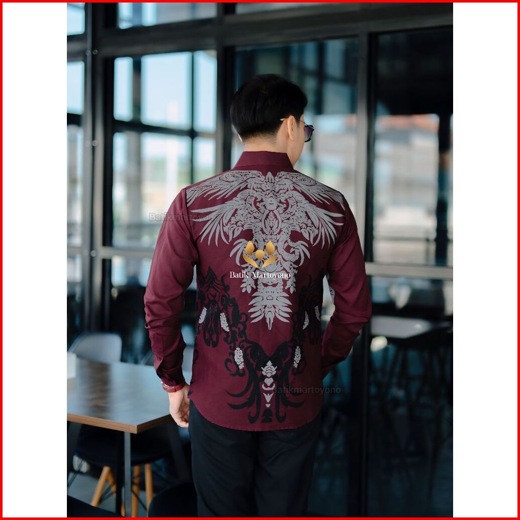 Bimantara Burgundy Maroon Kemeja Batik Pria Lengan Panjang Slimfit Modern