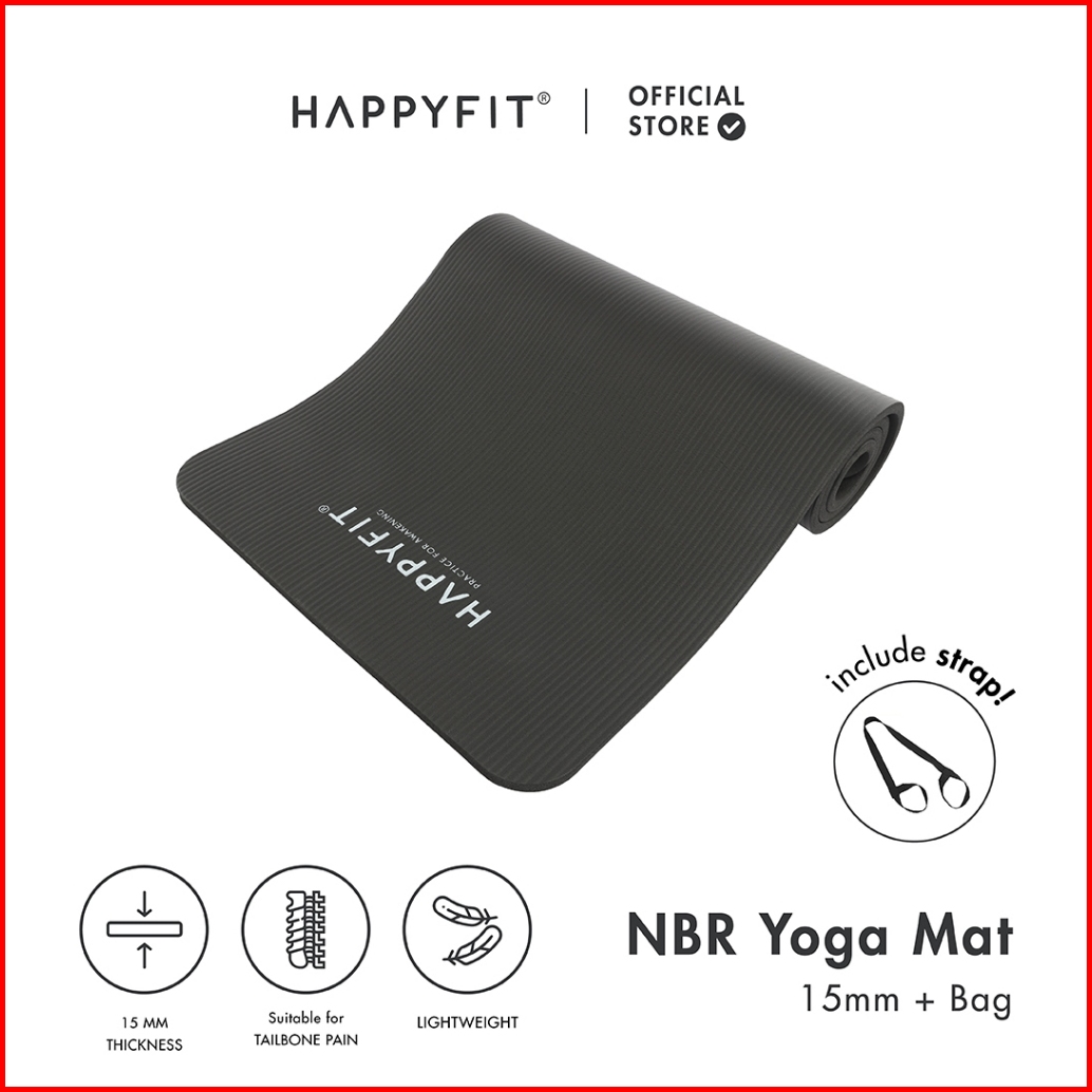 Happyfit - Yoga Mat Polos Nbr 15mm Free Strap Matras Yoga Matras Olahraga Matras Nbr