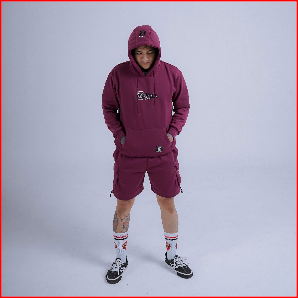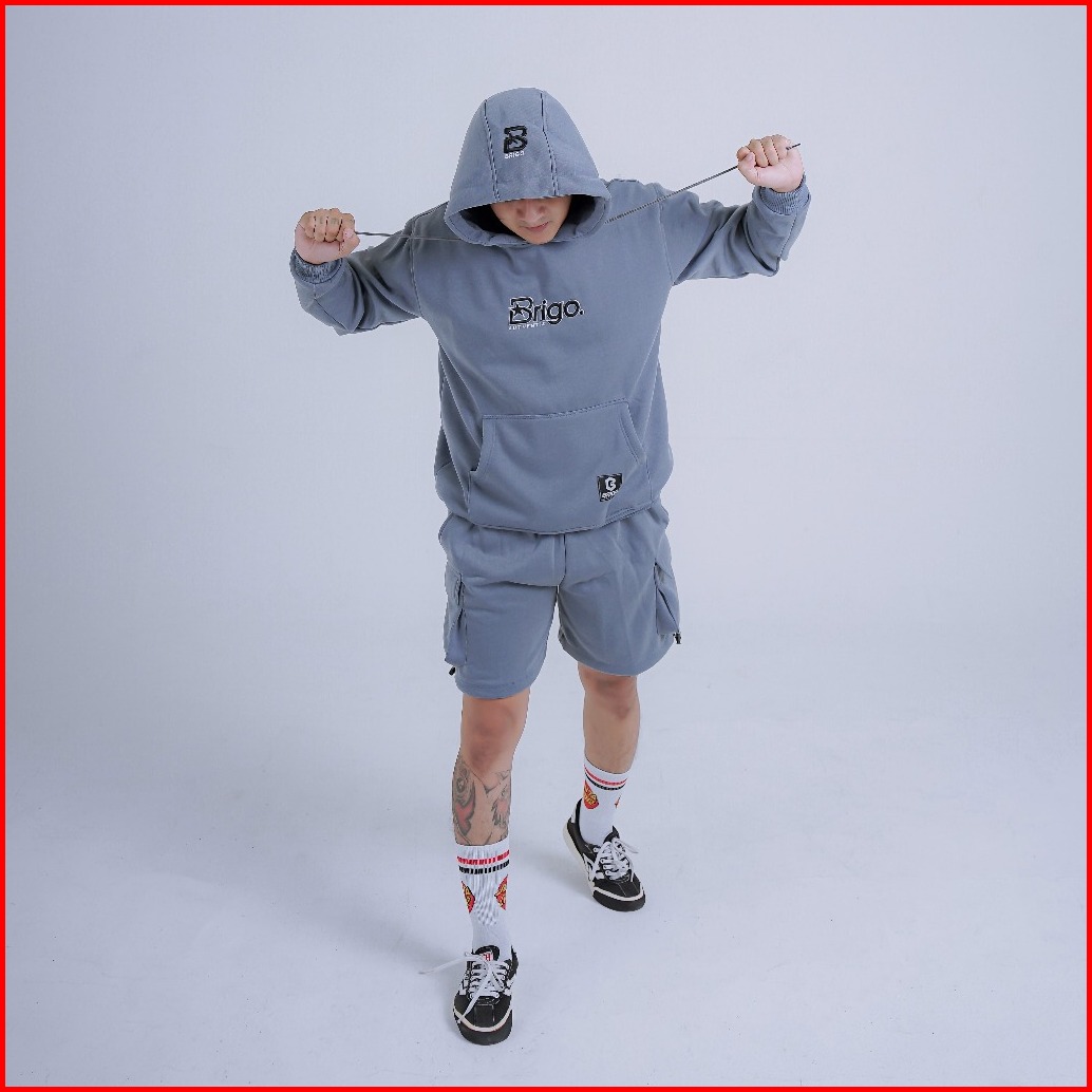 One Set Brigo Jumper Hoodie Star Bordir Timbul 3d Dan Celana Cargo Pendek Ii Setelan Sweater Hoodie Celana Santai Cargo