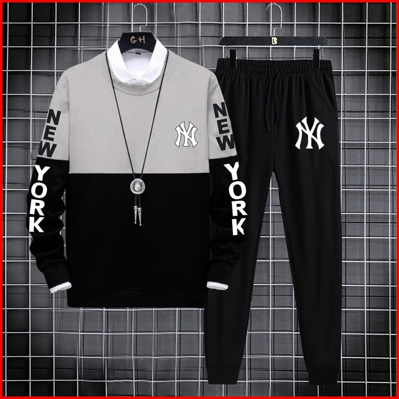 Setelan Baju Lengan Panjang Ny Pria Stelan Celana Jogger Cowok Premium