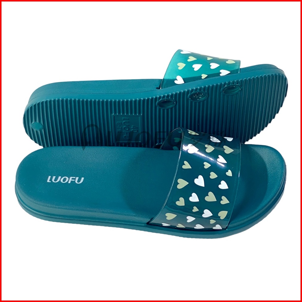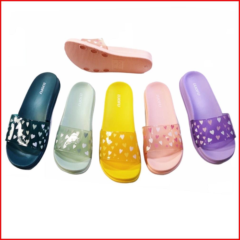 Luofu Sendal Jelly Karet Eva Kokop Transpartant Wanita Motif Love E7159-26tcl G02