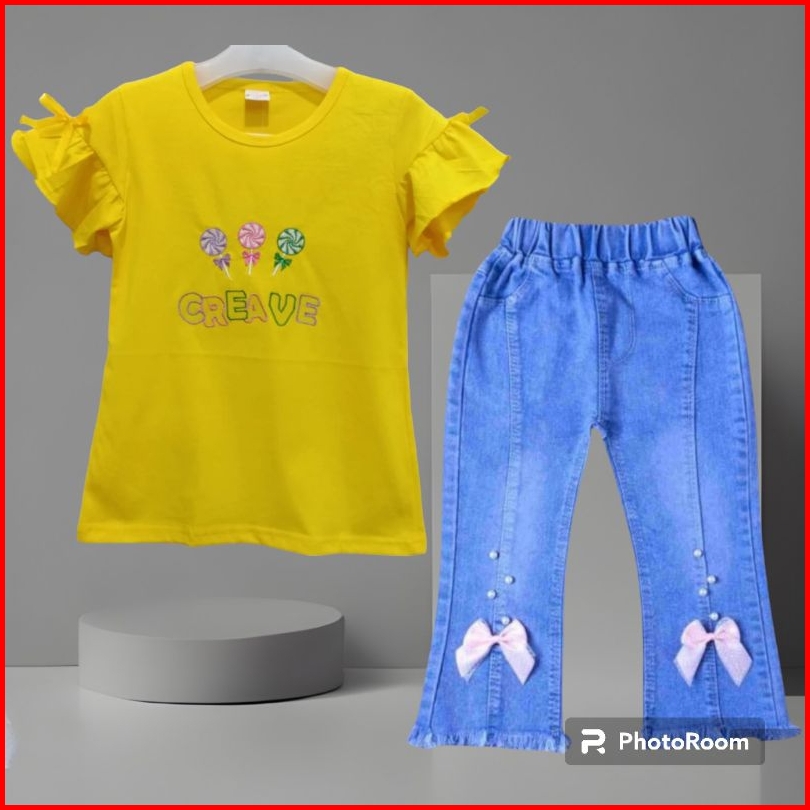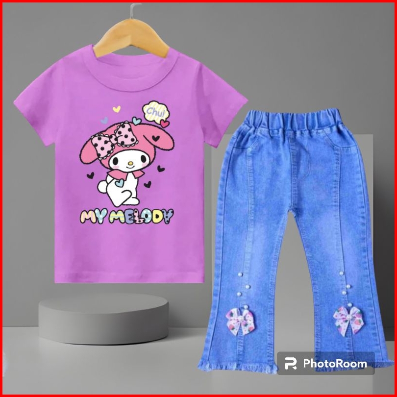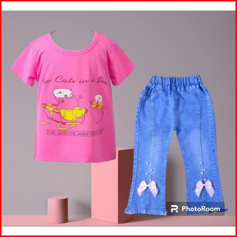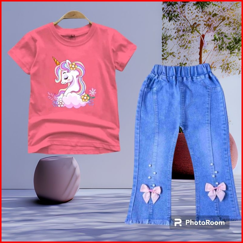 Stelan Anak Perempuan Import Premium Usia Satu Sampai Sepuluh Tahun Setelan Baju Kaos Lengan Pendek Anak Wanita Cantik S