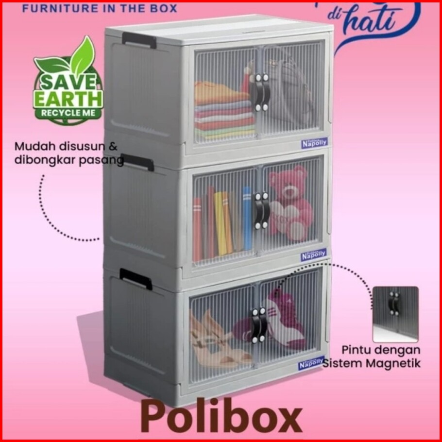 Lemari Plastik Napolly Rak 3 Susun Lipat Serbaguna Bisa Ditumpuk Rak Apartemen Polibox 346 Murah