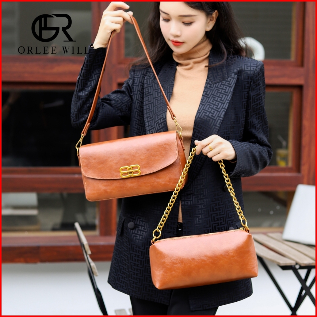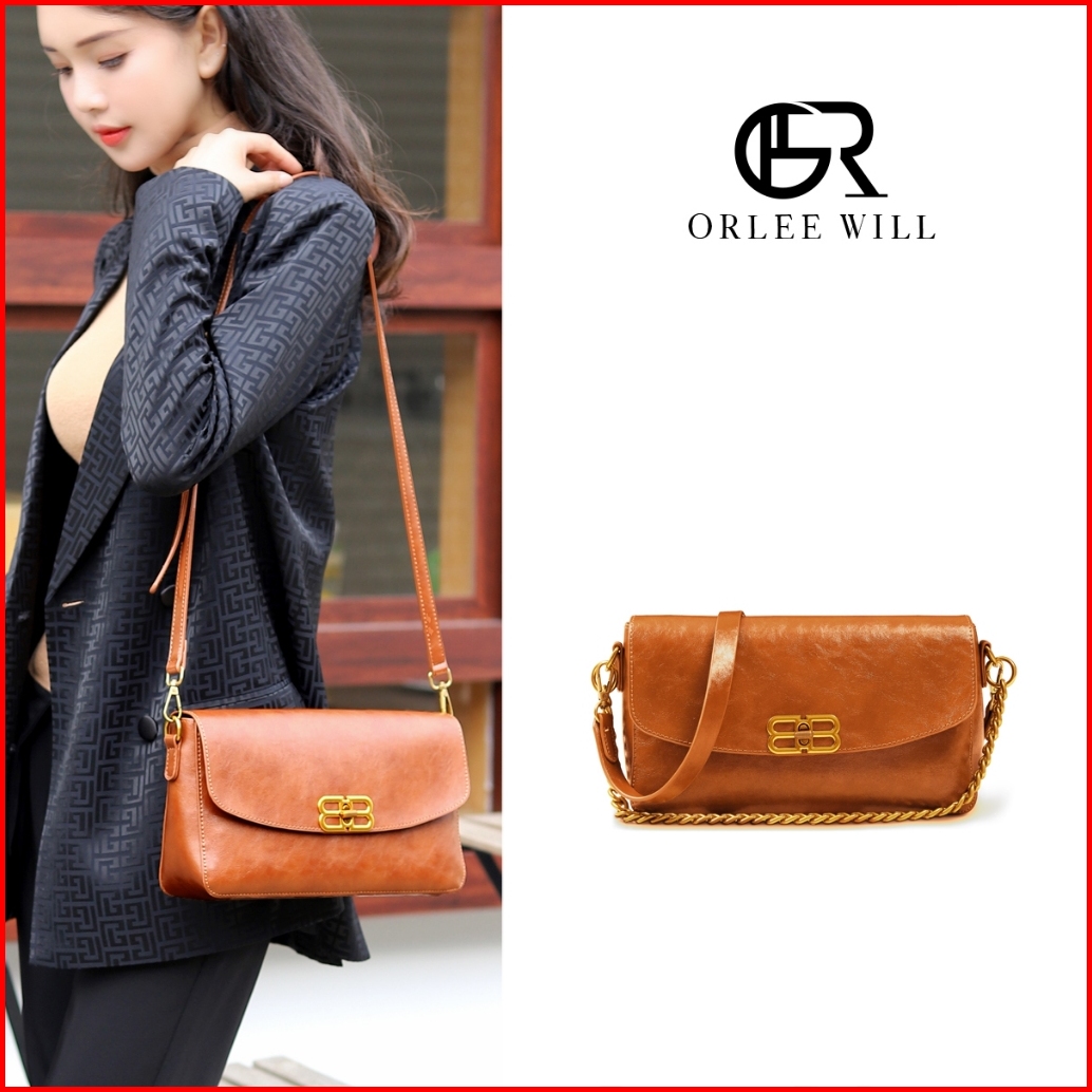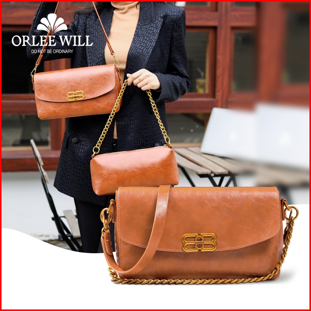 Orlee Will Tas Hand Bag Wanita Tas Amplop Wanita Rantai Import Kulit Asli Kulit Lilin Ol-16