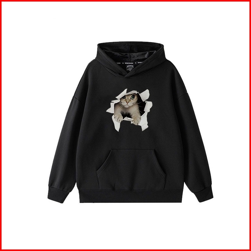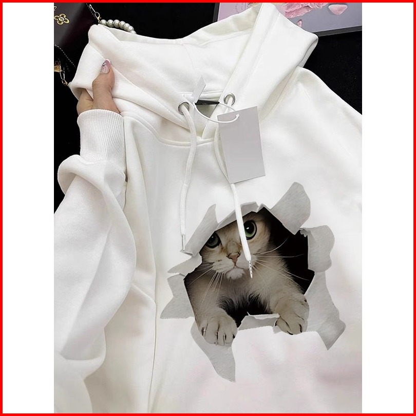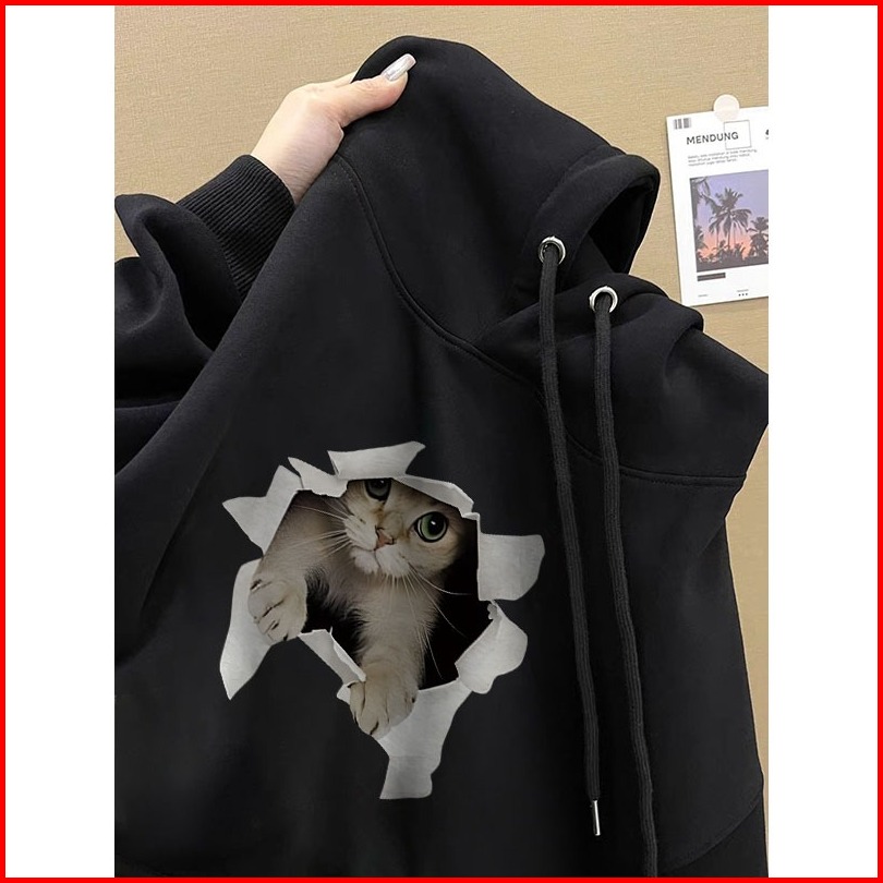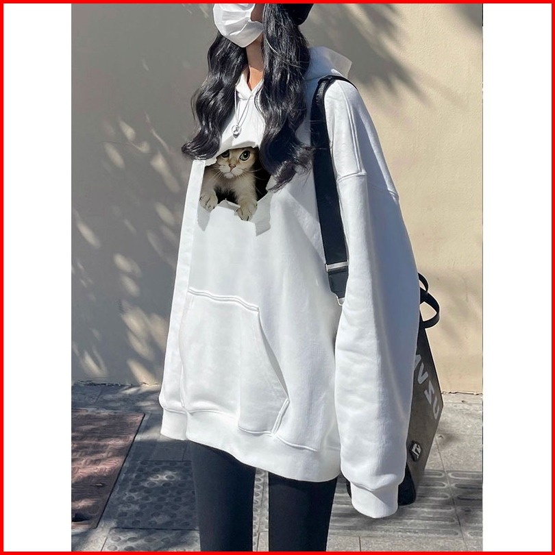 Forteid Oversize Hoodie Wanita Korean Style Oversize Hoodie Sweater Cetak Anak Kucing Baju Wanita Kekinian Baju Wanita S