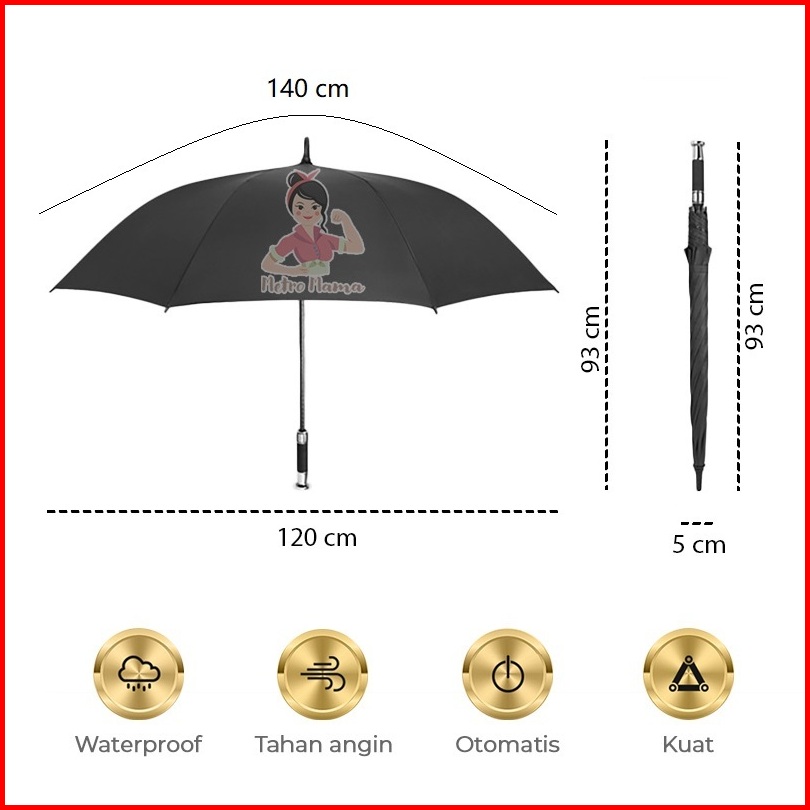 Payung Golf Rr Jumbo Anti Uv Premium Rangka Fiber Nylon Polos Otomatis