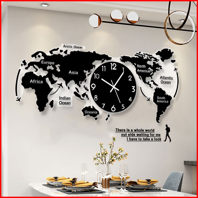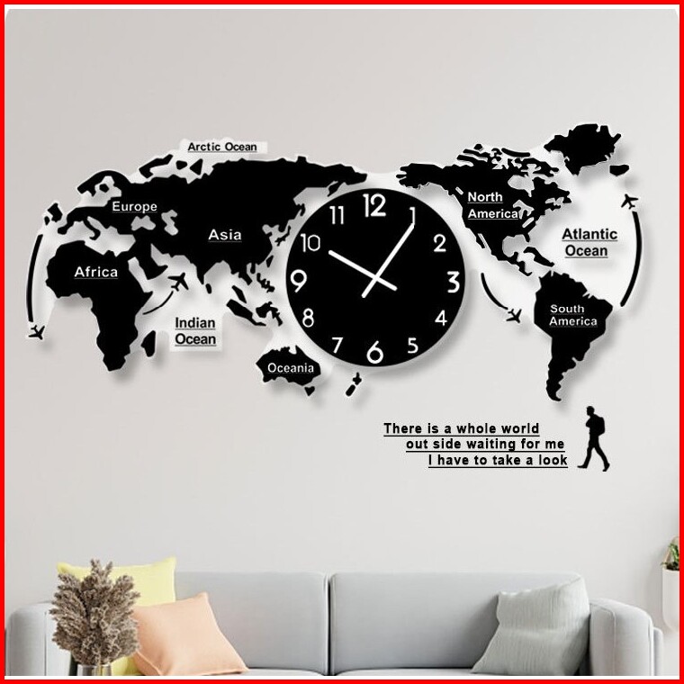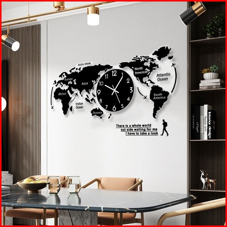 Hiasan Dinding Jam Peta Minimalis Jam Dinding Desain Peta Dunia Gaya Nordic Minimalis Map Clock Wall Decoration Zjc