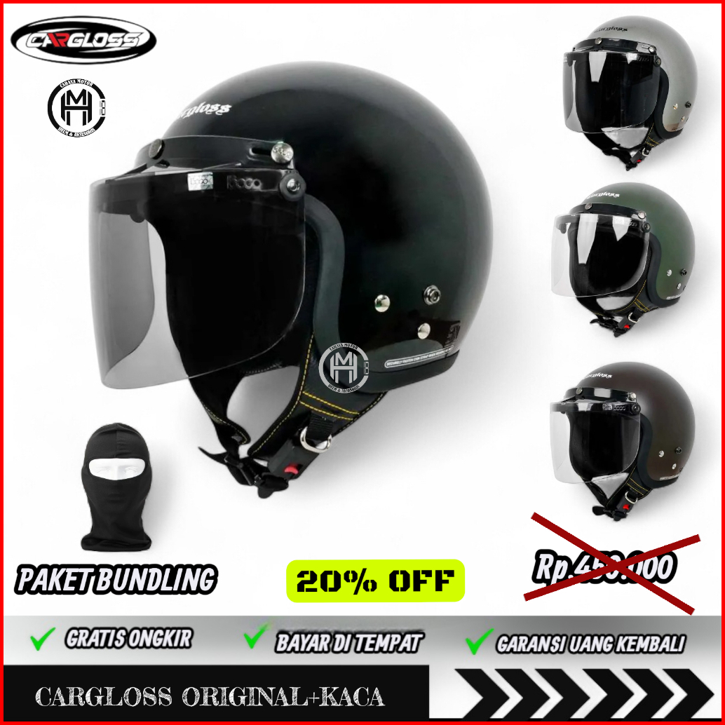 Helm Cargloss Cfm Kaca Datar Flat Paket Hemat Original