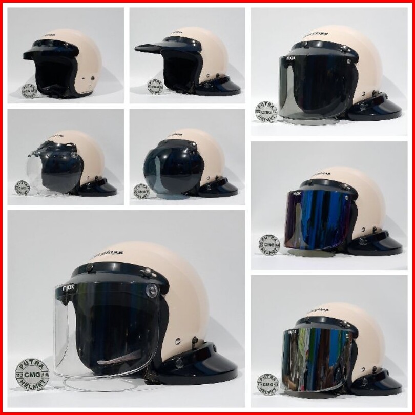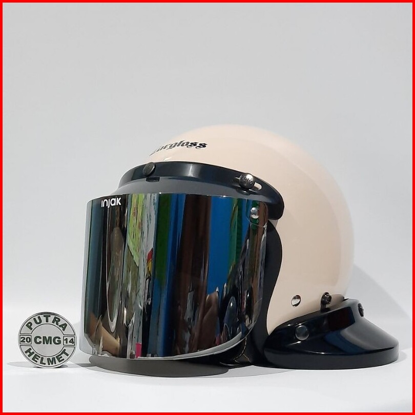 Paket Helm Cargloss Carglos Original Cfm Retro Avorio Naiade Cream Kaca Datar Flat Cembung
