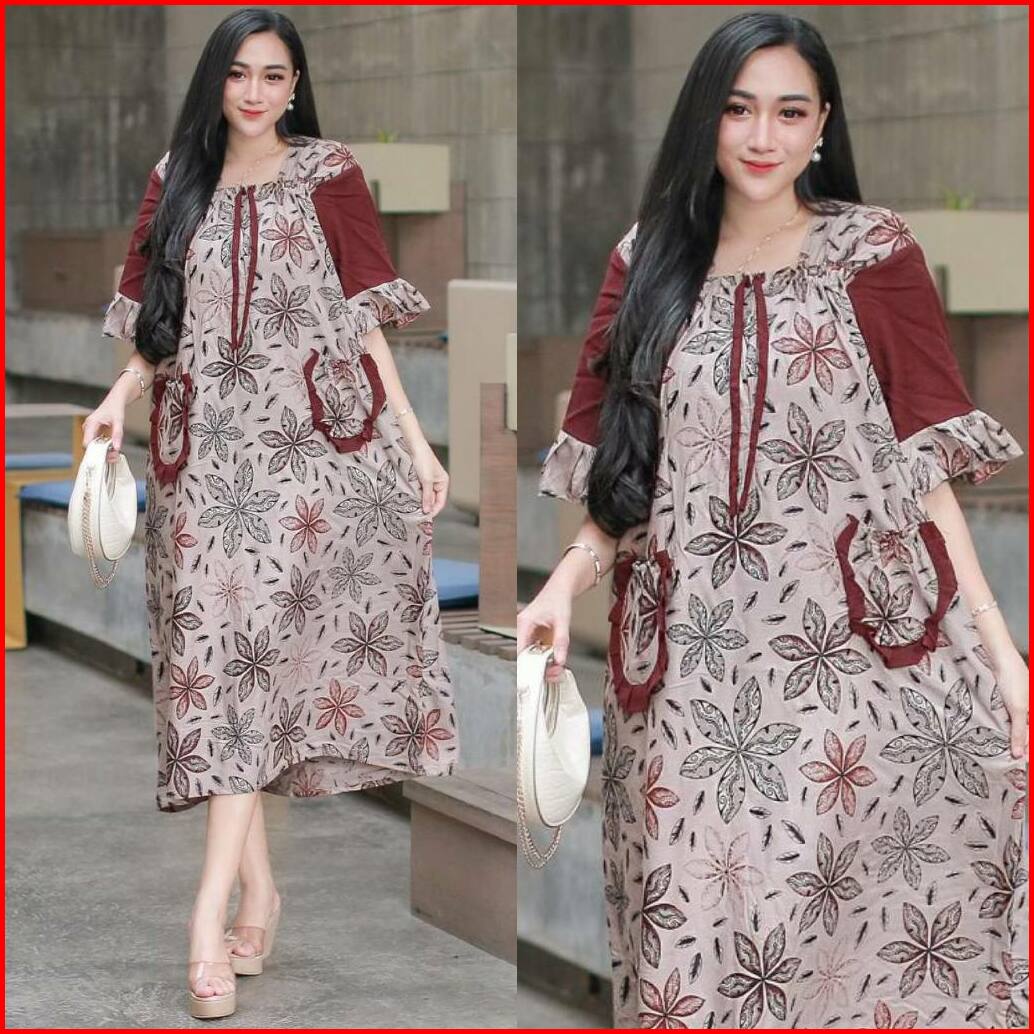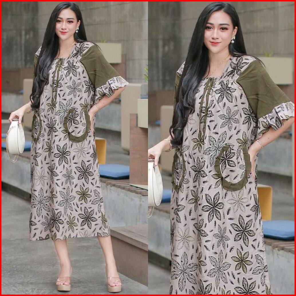 Daster Jumbo Ld 120cm Fuji Andinleo Flower Daster Wanita Busui Resleting Bumil Rayon Premium Daster