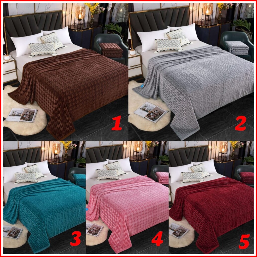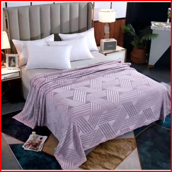 Selimut Bulu Flanel 200 230cm Motif Embos Lembut Tebal Import Polos Warna 3ukuran -
