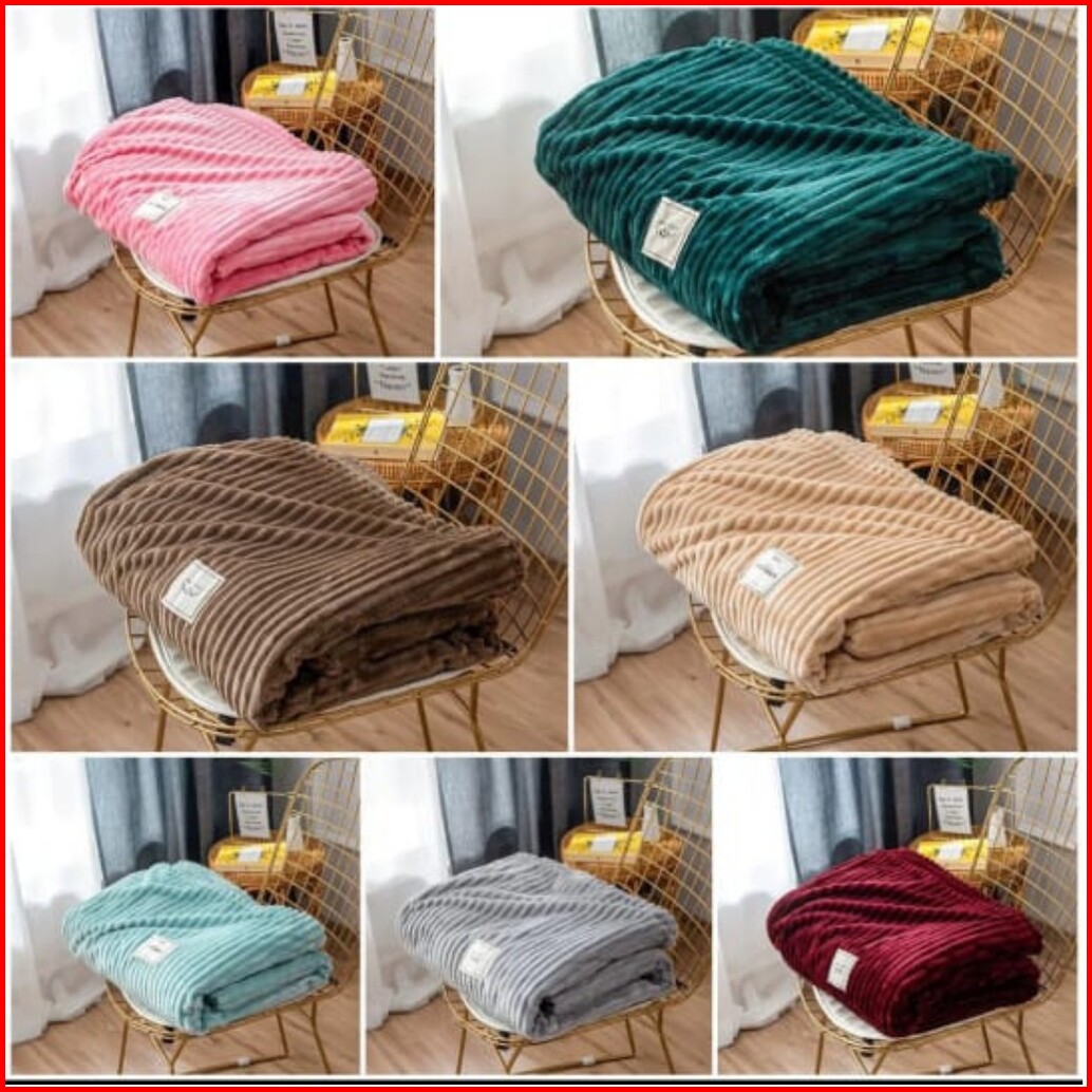 Selimut Dewasa Polos Salur Jumbo Selimut Bulu Tebal Lembut