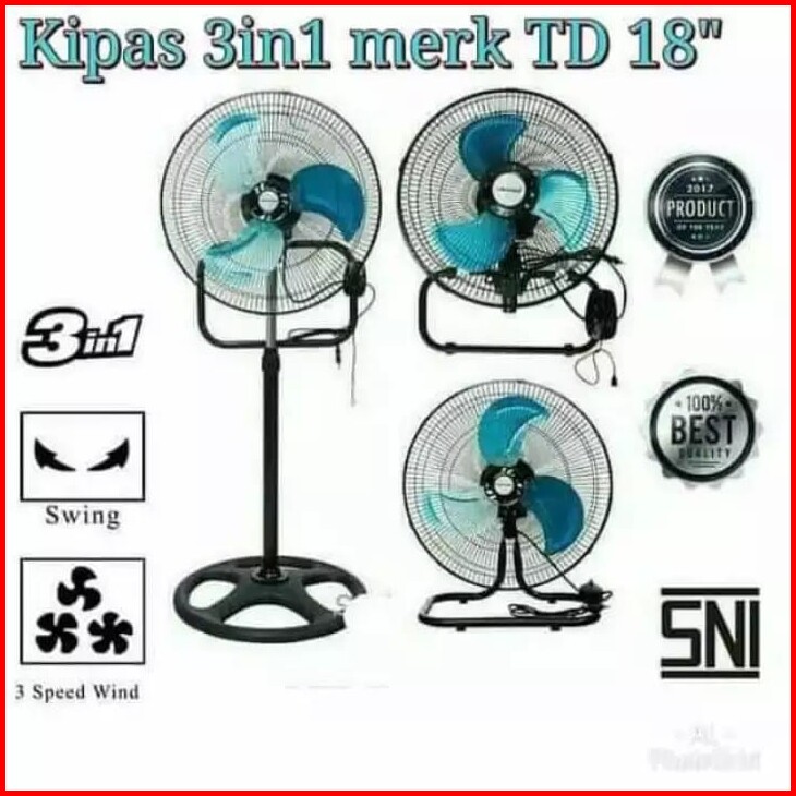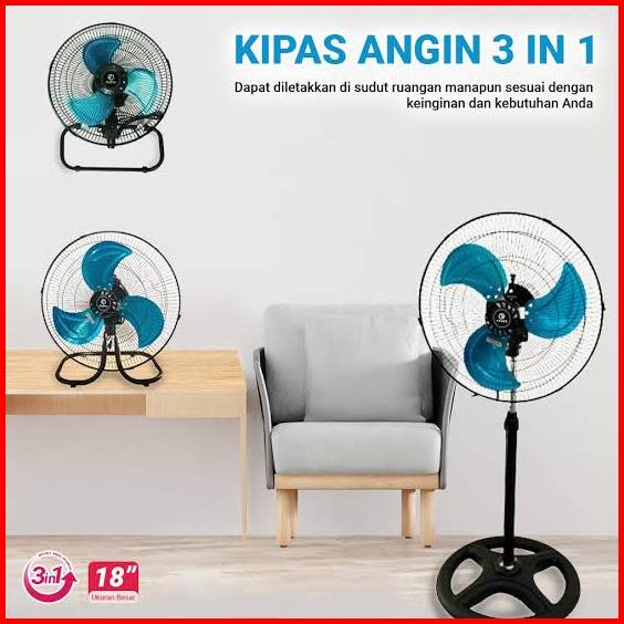 Kipas Angin Besi Tornado 3 In 1 Berdiri Duduk Dinding 18 Inch