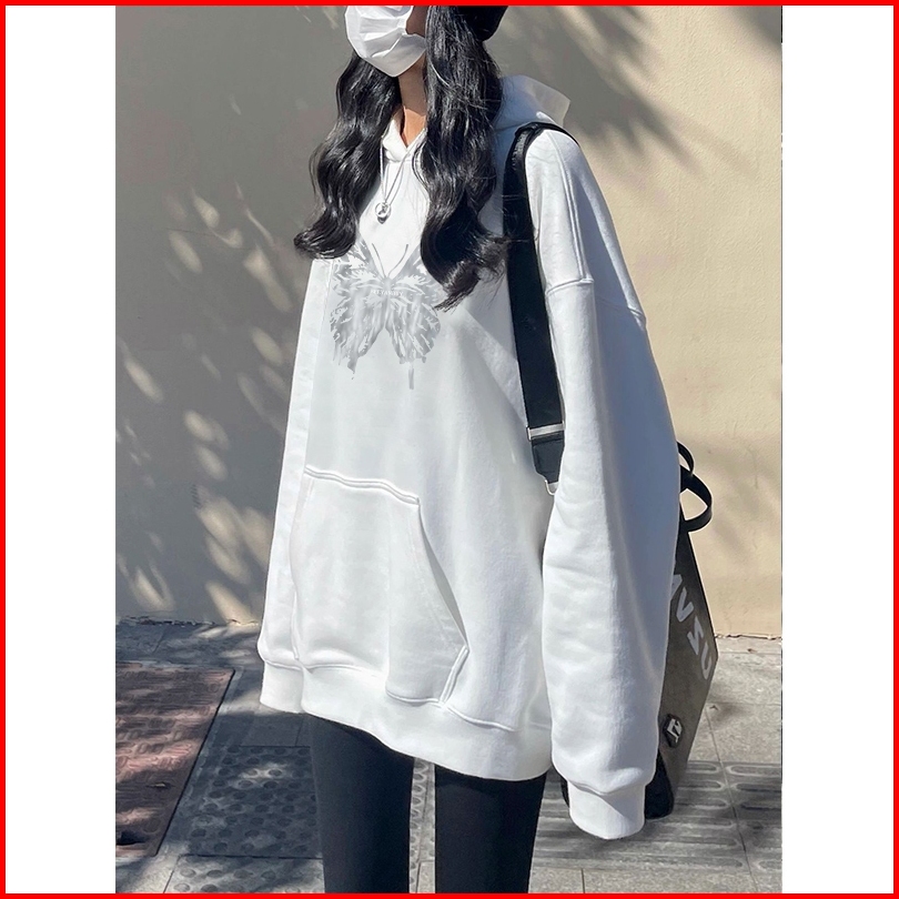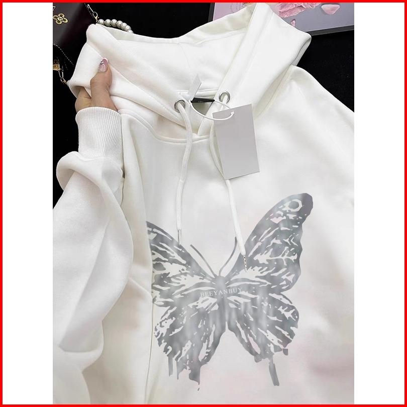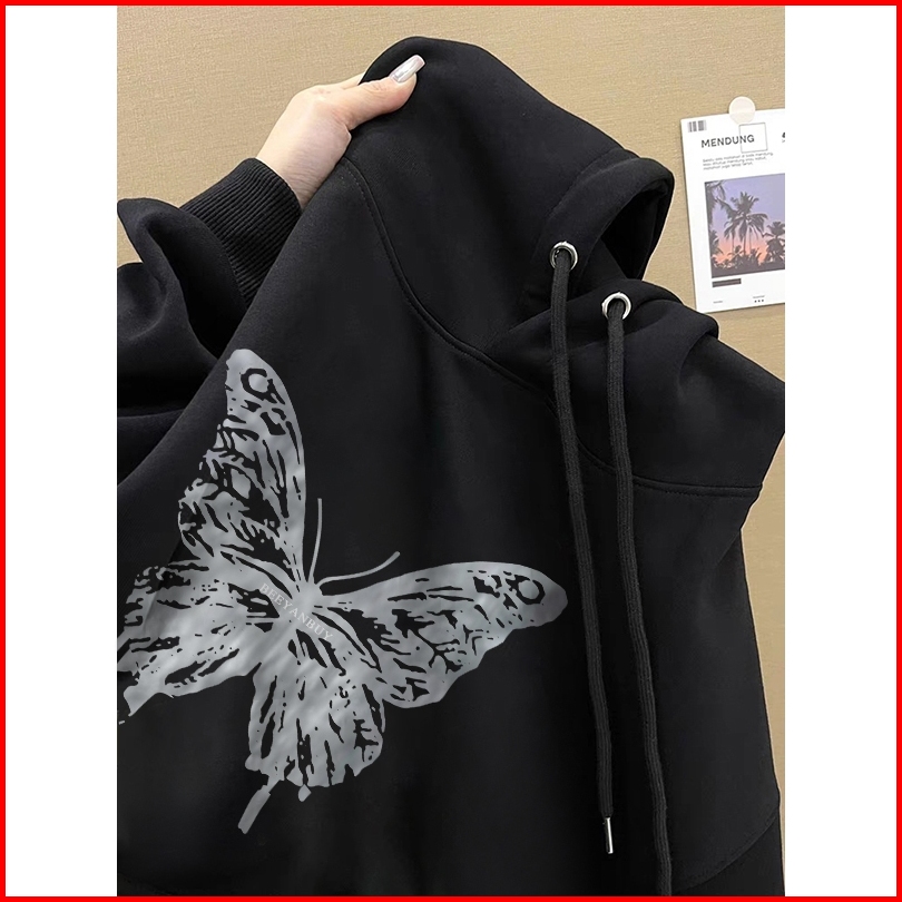 Forteid Oversize Hoodie Wanita Korean Style Oversize Hoodie Sweater Delicate Beautiful Butterfly Baju Wanita Kekinian Ba