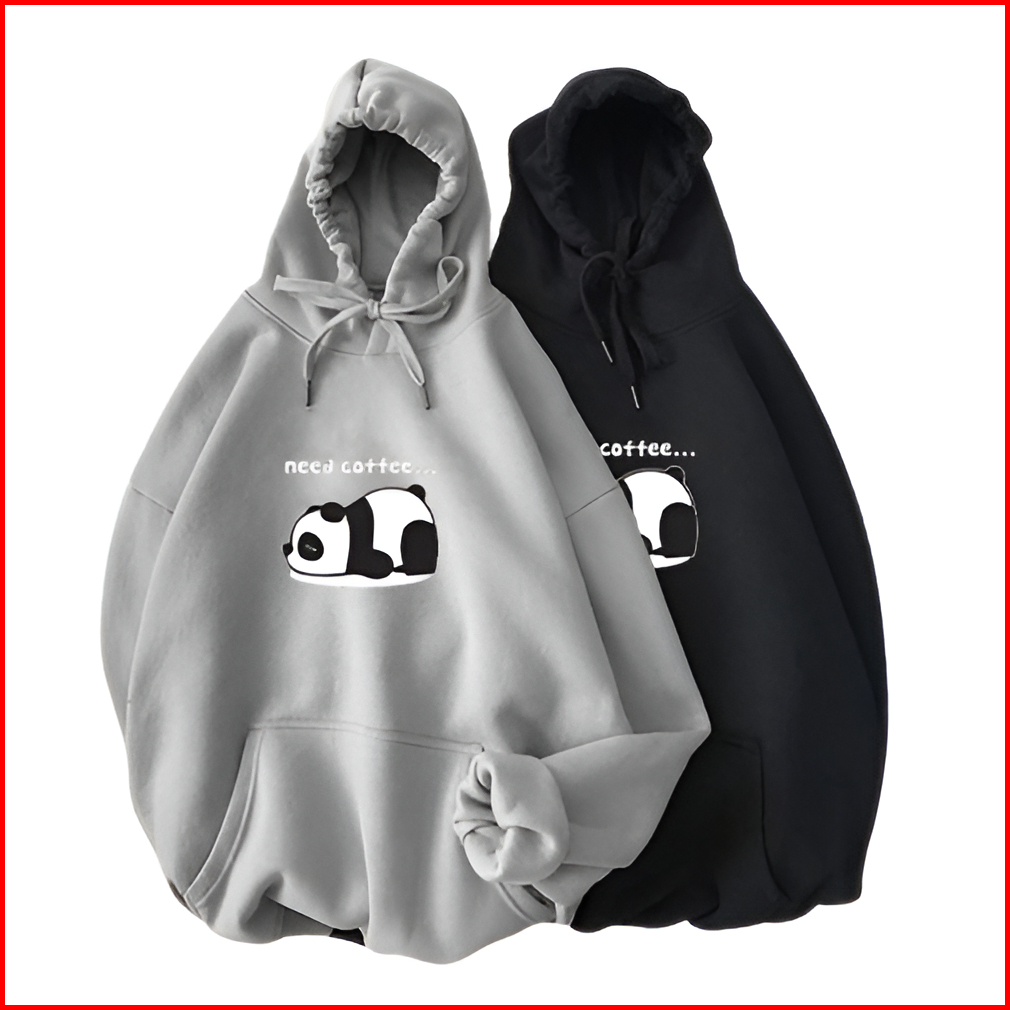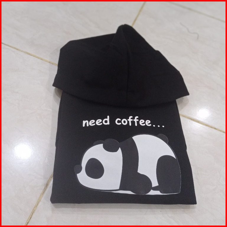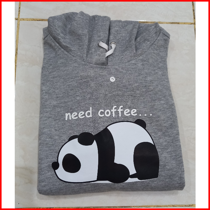 Lsh Hoodie Jumper Panda Need Coffee Bahan Cotton Fleece Premium Size M-xxl Wanita Dan Pria