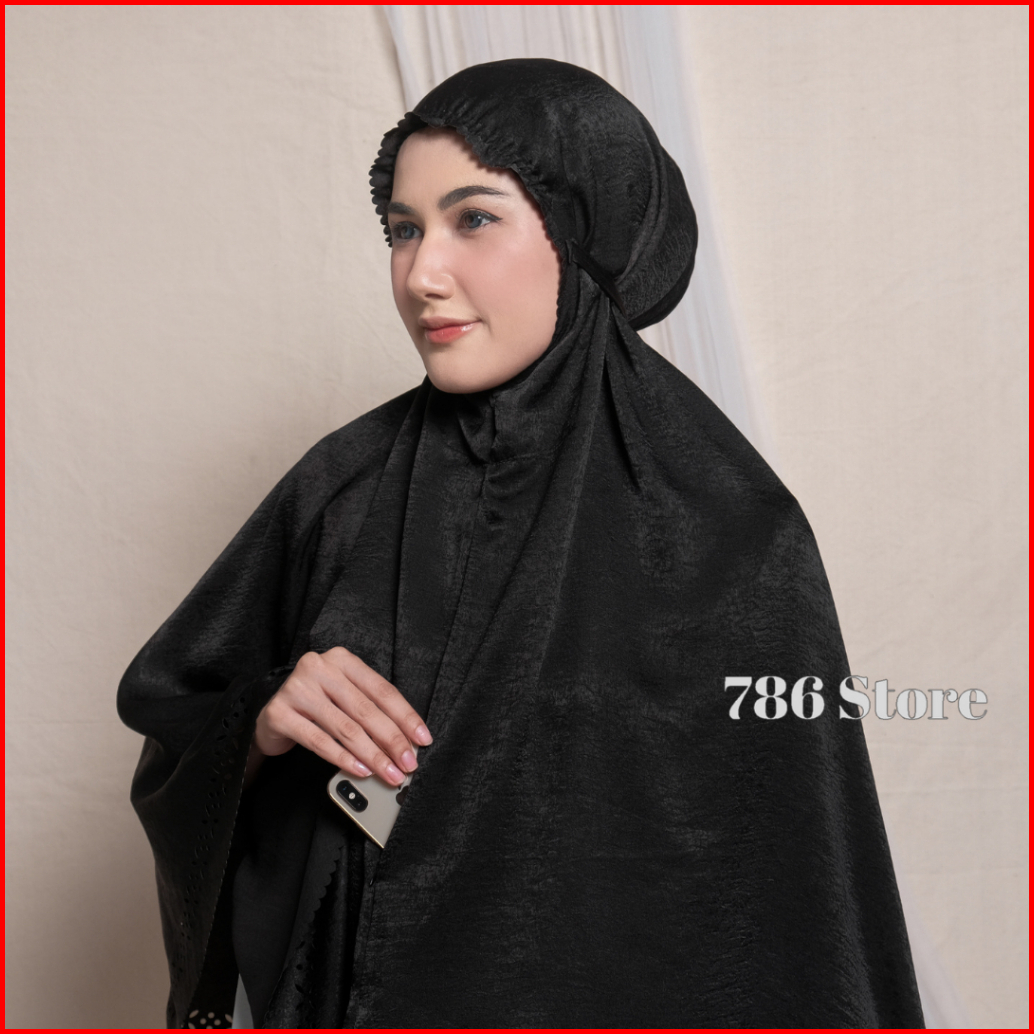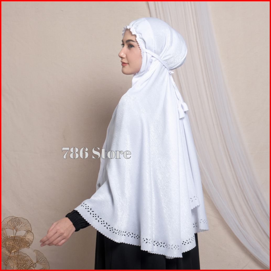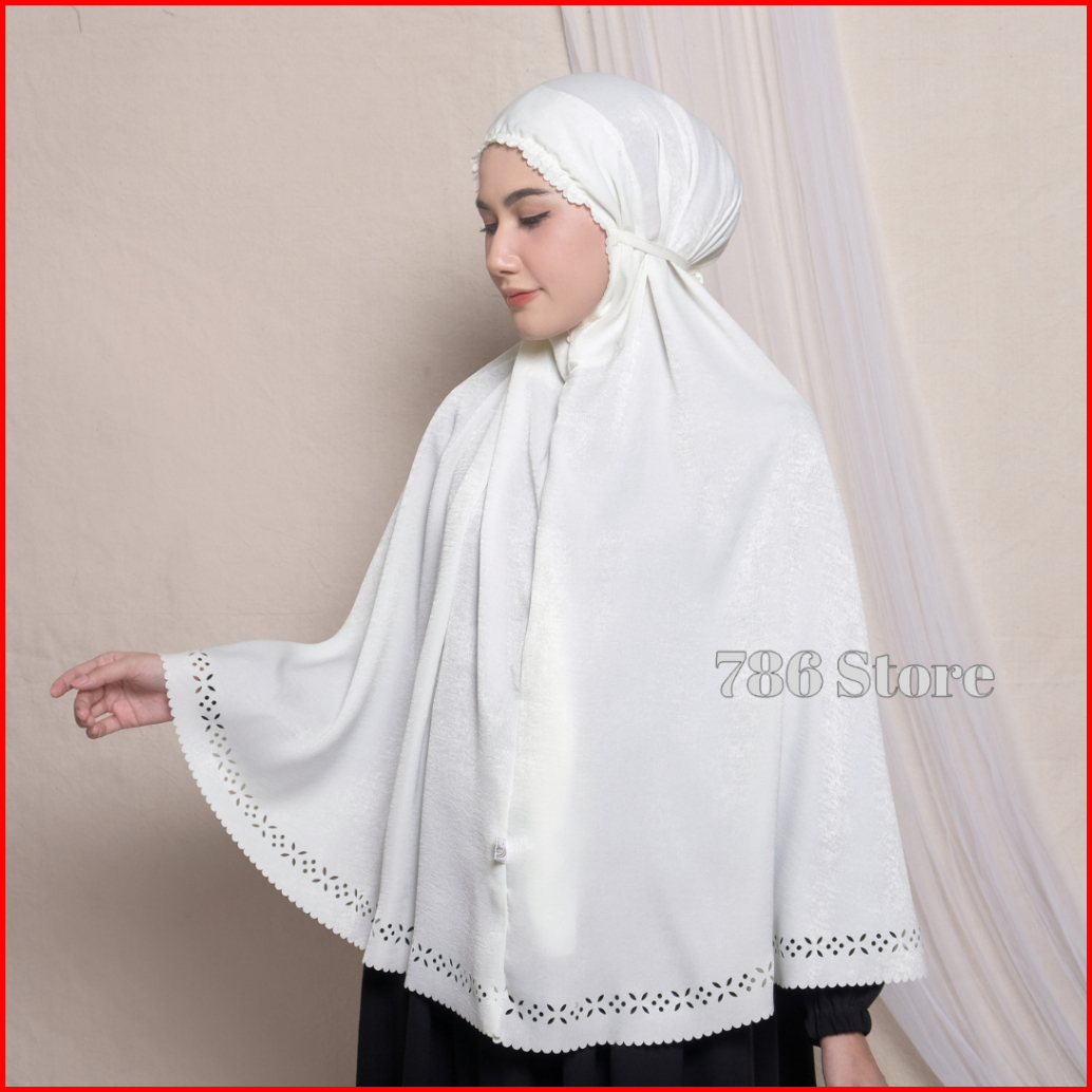 Kerudung Bergo Hijab Saku Santorini Laser Cut Jilbab Umroh Haji Pengajian