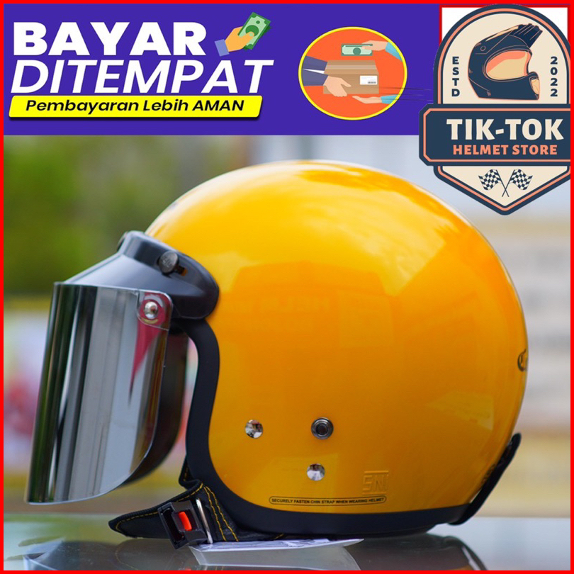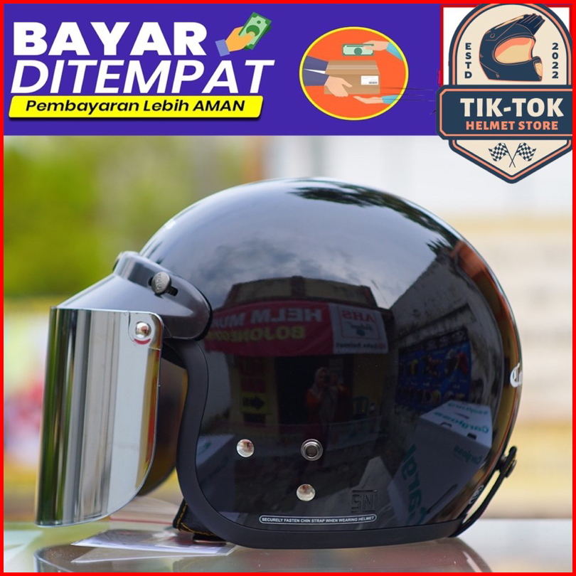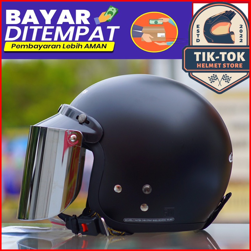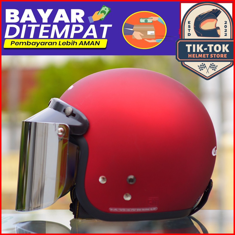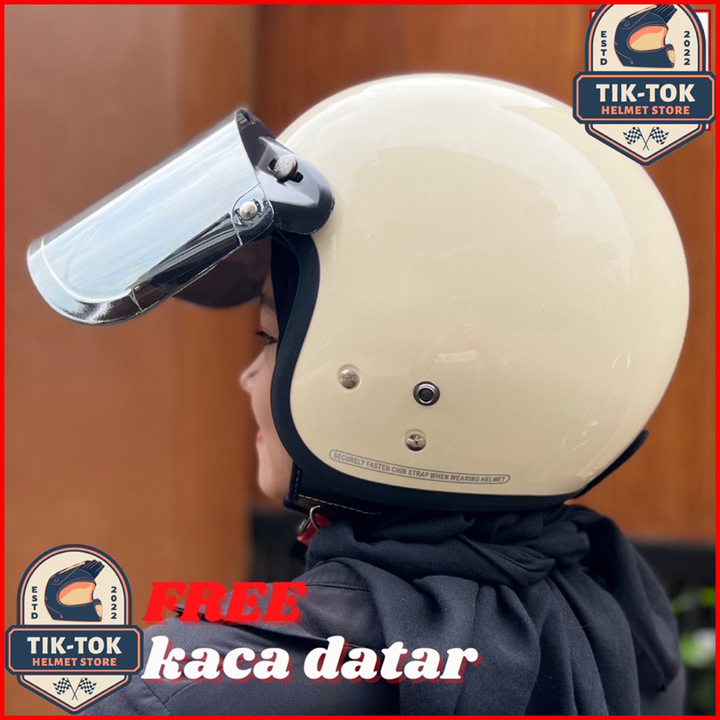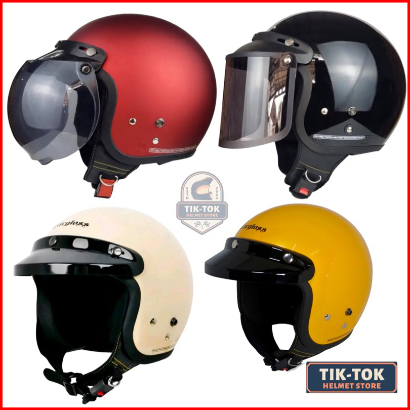 Helm Bogo Retro Dewasa Variasi Kaca Datar Cembung Pet Free Peking Box