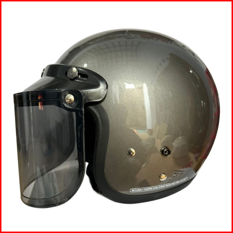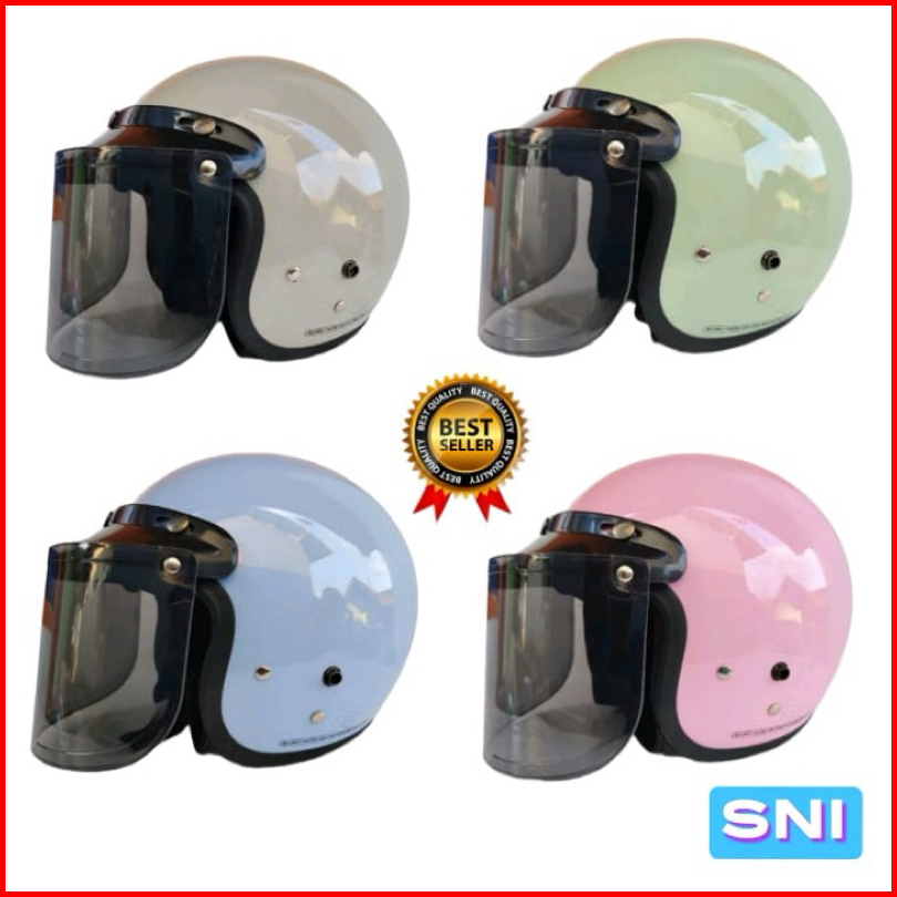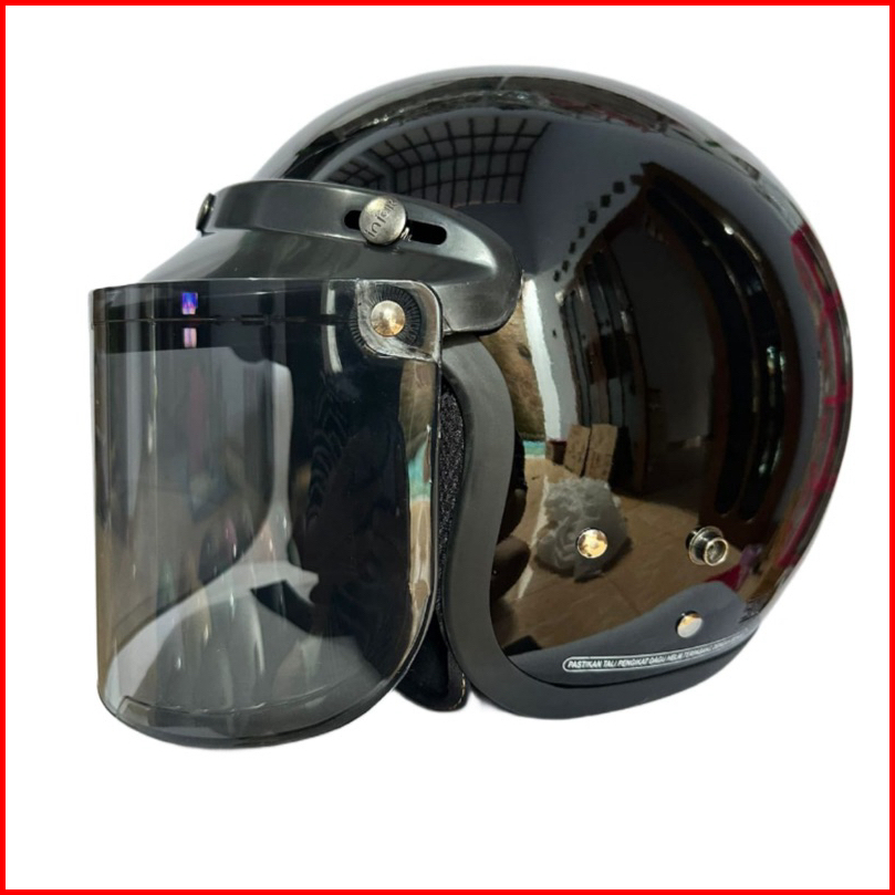 Helm Bogo Retro Premium Full Leher Sni Kaca Datar