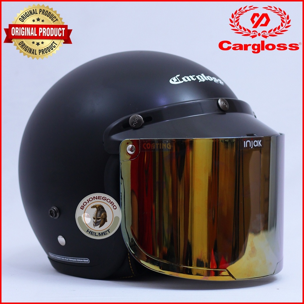 Helm Cargloss Black Doff Half Face Original Free Visor