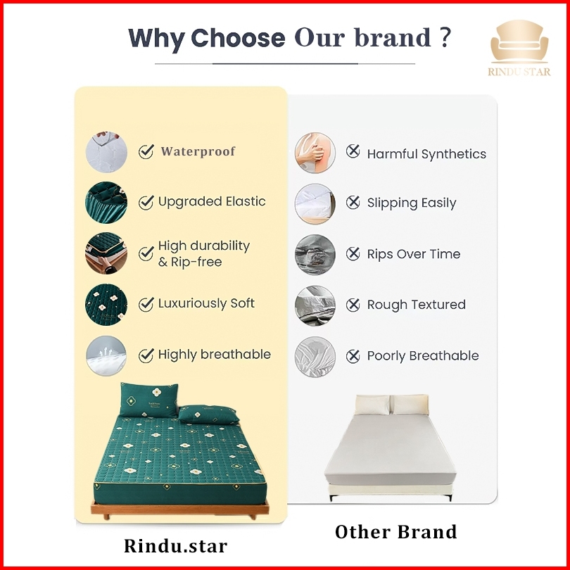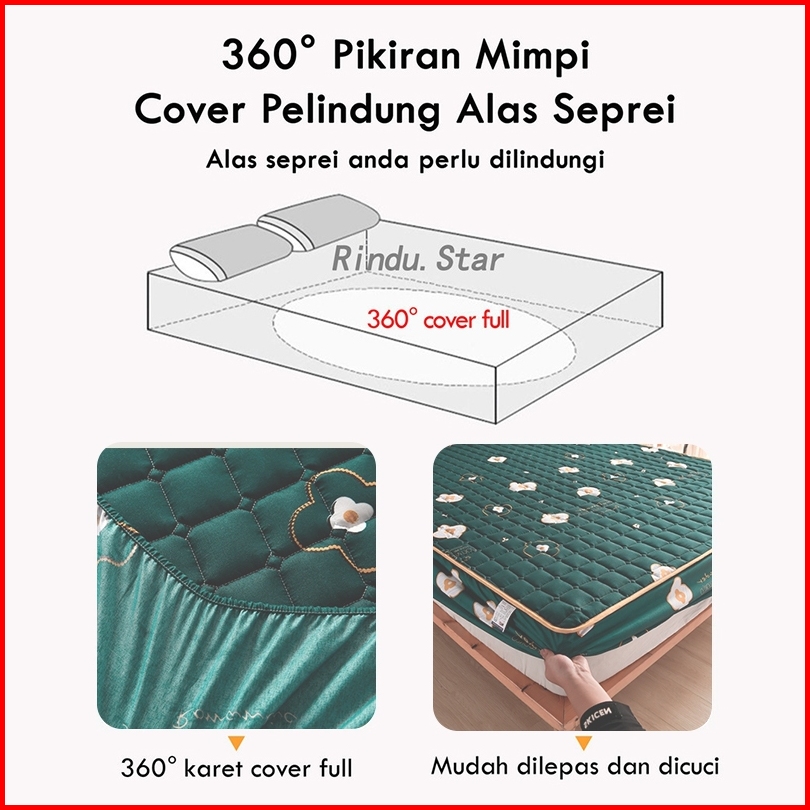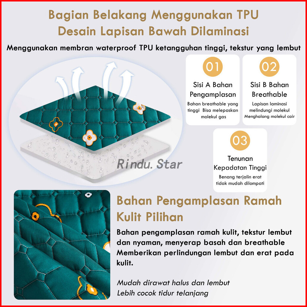 Rindu.star Warna Polos Sprei Breathable Sprei Protector Bermotif Sprei Anti Air Ukuran 120x200 160x200 180x200