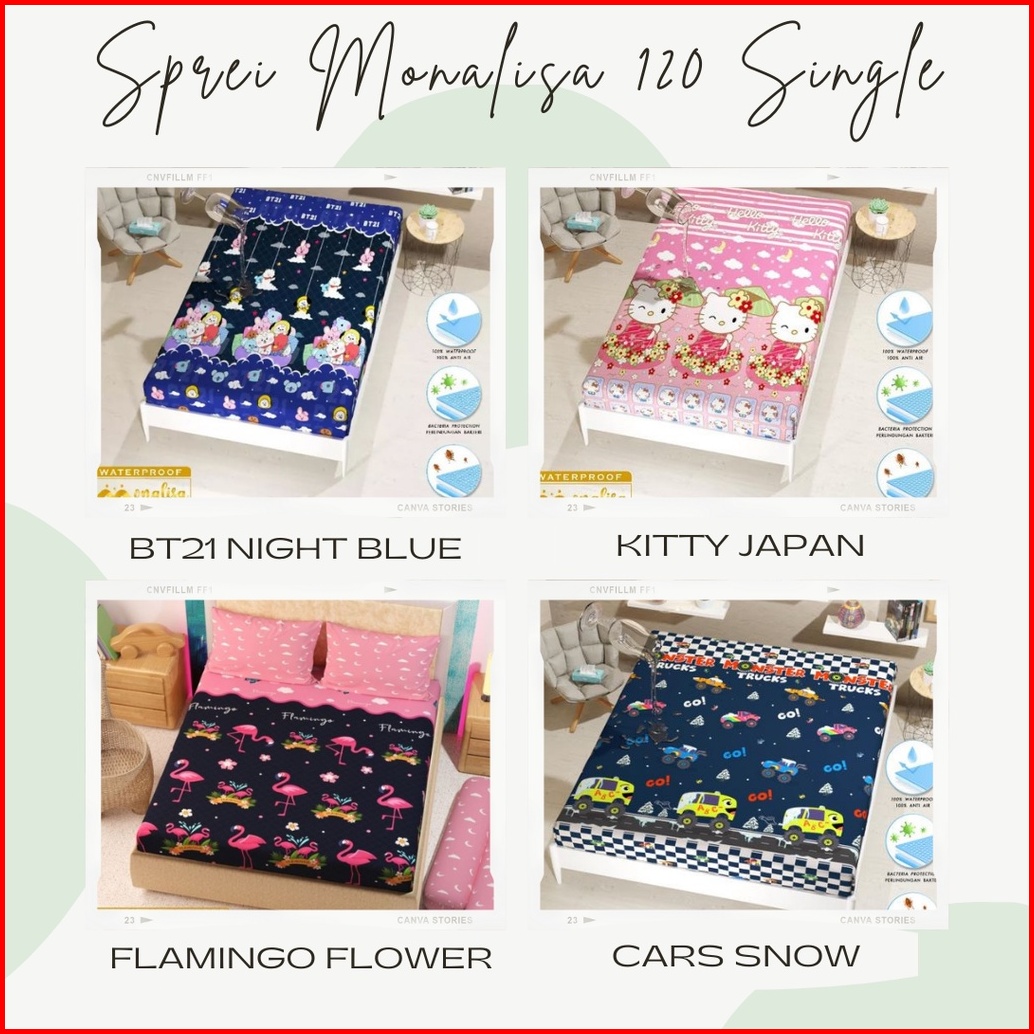 Sprei Waterpoof Monalisa Anti Ompol Anti Air Hujan Size 180 200 160 200 120 200 Grosir Ecer Murah
