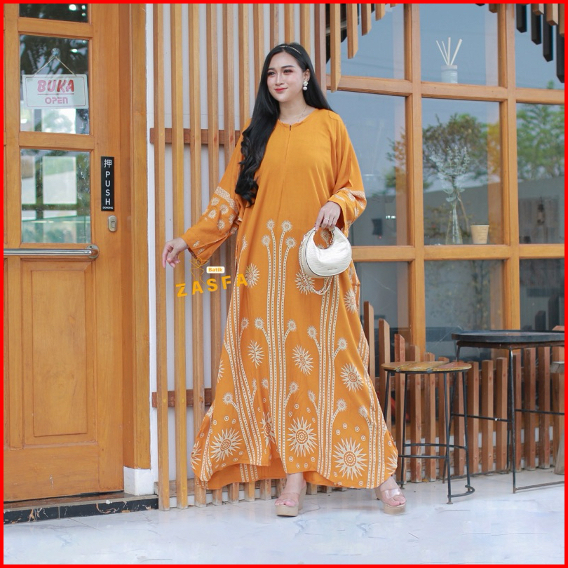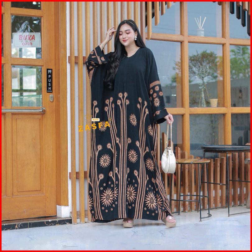 Zasfa Kaftan Aisyah Jumbo Rayon Premium Ld 160 Cm Busui Resleting Depan Lengan Karet