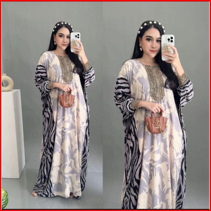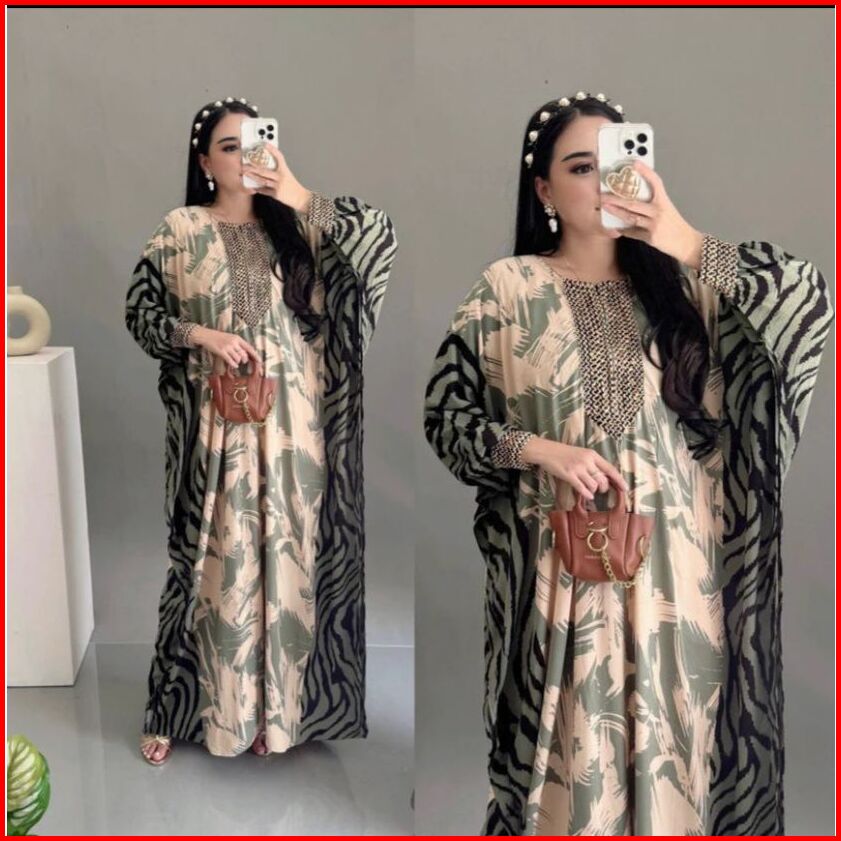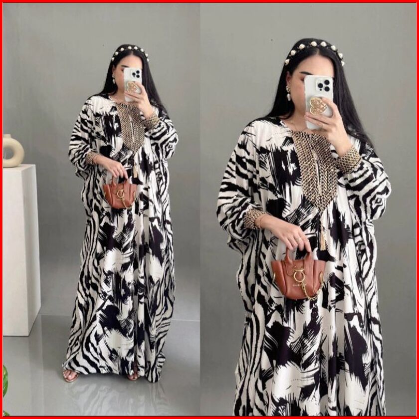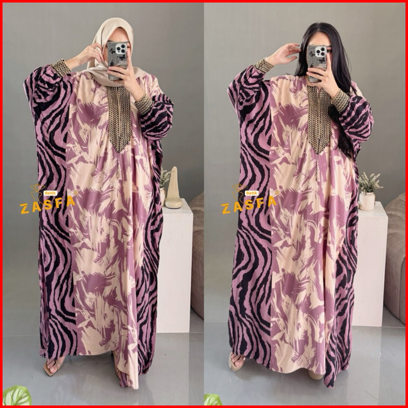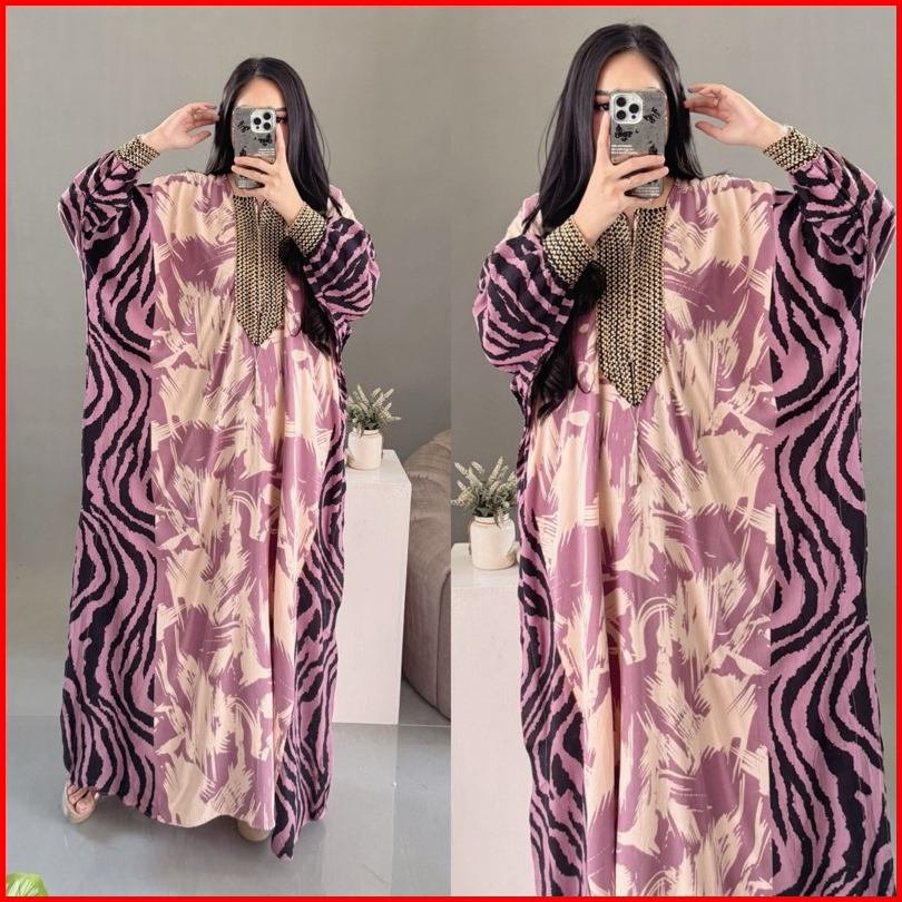 Zasfa Kaftan Renda Sultan Malika Jumbo Rayon Premium Ld 150 Cm Busui Araesleting Depan Lengan Karet