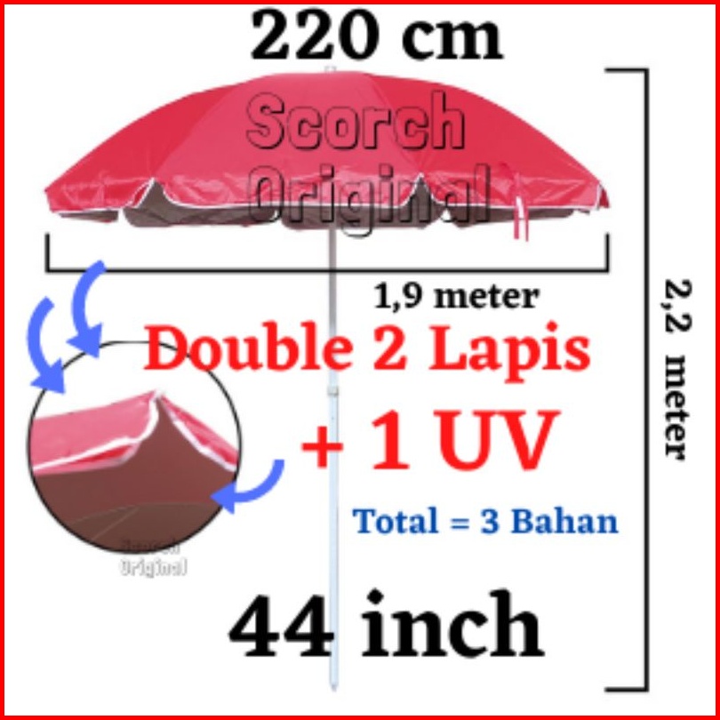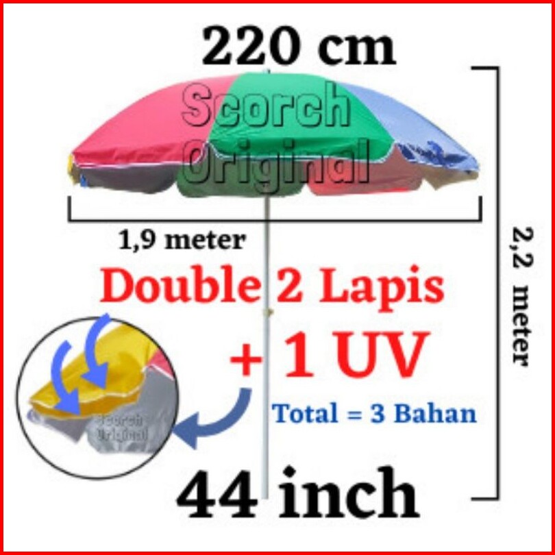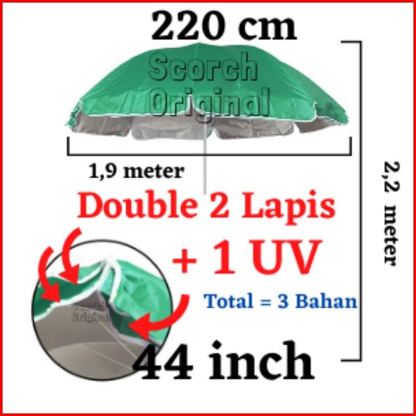 Payung Taman Double Dua 2 Lapis 1 Lapis Anti Uv Silver Uk T 44 Inch 220cm