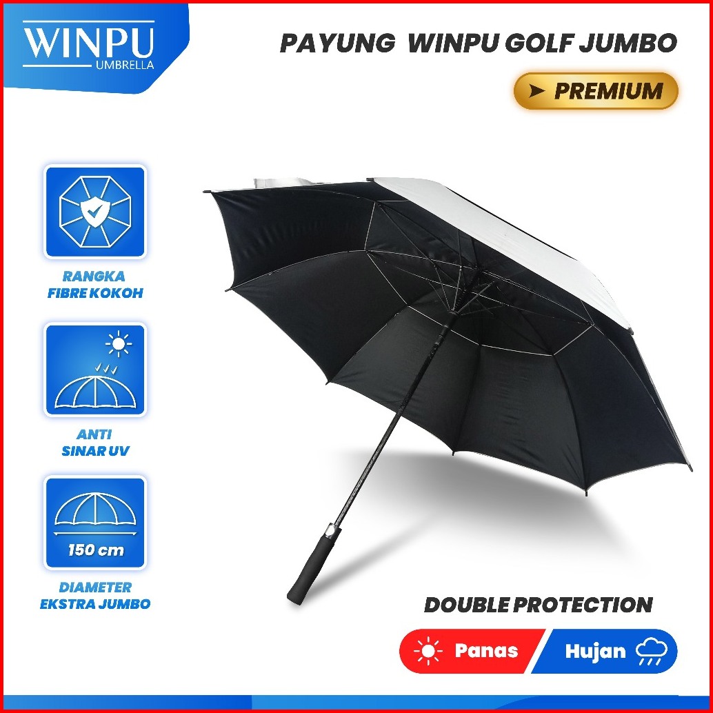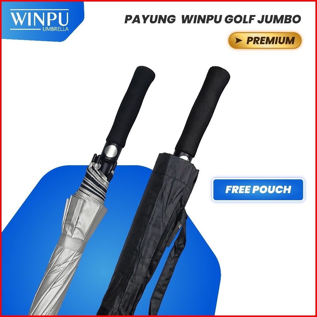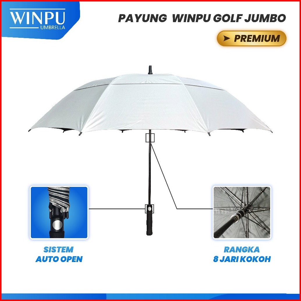 Winpu Payung Besar Jumbo Golf Otomatis Premium Susun Silver Murah Bonus Sarung Hitam