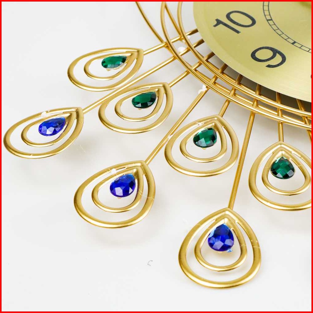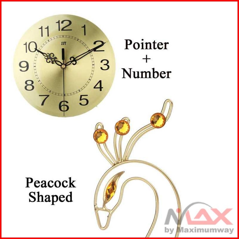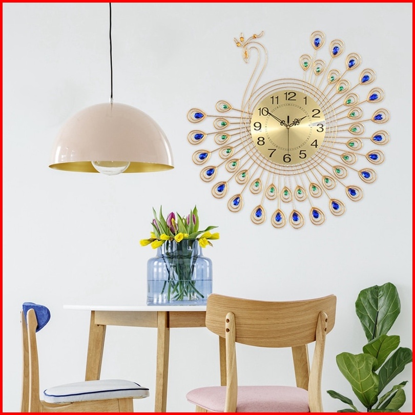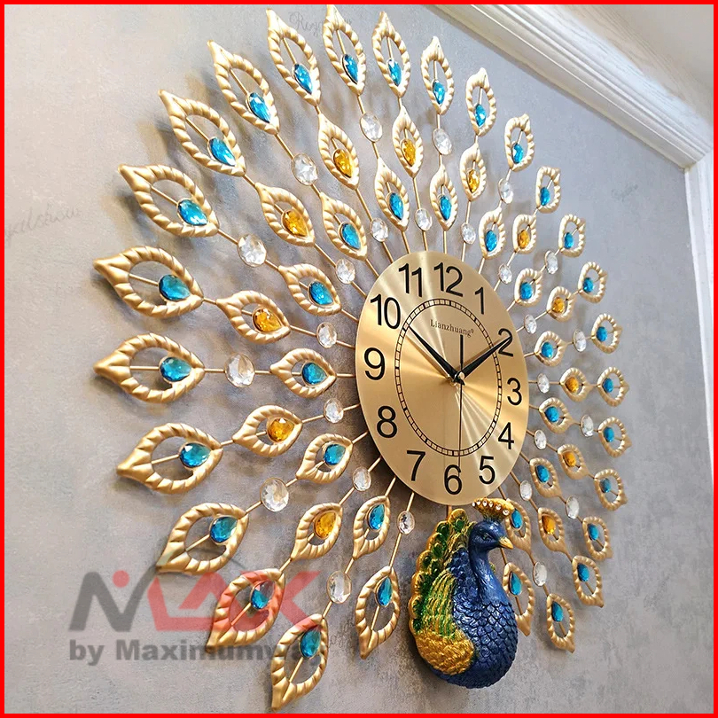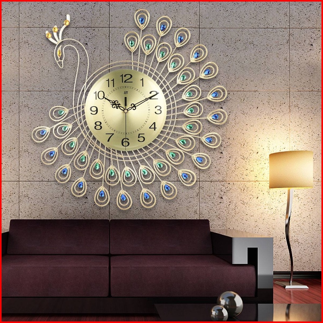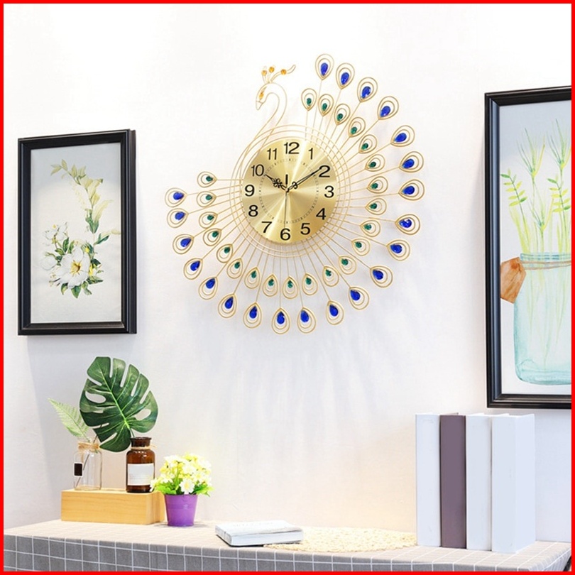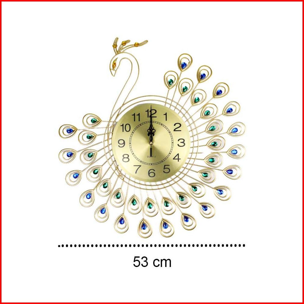 Jam Dinding Mewah Merak 53cm Bahan Besi Metal Material 3d Jam Dinding Bulat Quartz