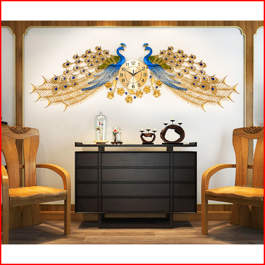 Jam Dinding Besar Merak Ruang Tamu 168 55cm Jam Dinding Mode Bisu Logam Jam Dinding Dekoratif Bergaya Atmosfer