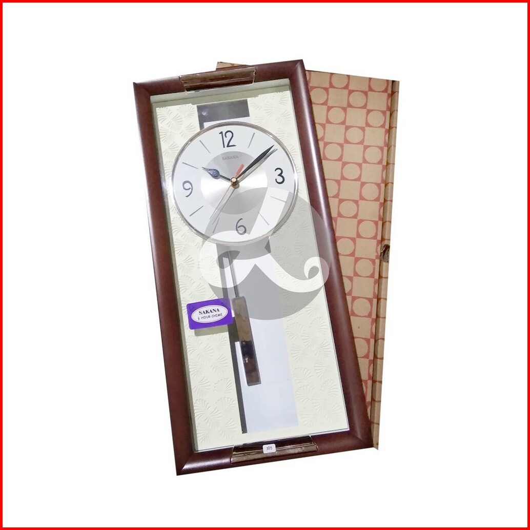 Jam Dinding Rumah Kotak Bulat Clock Sakana 389 Bandul Lonceng Polos