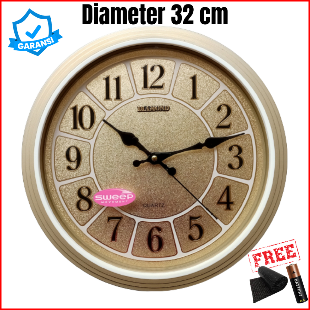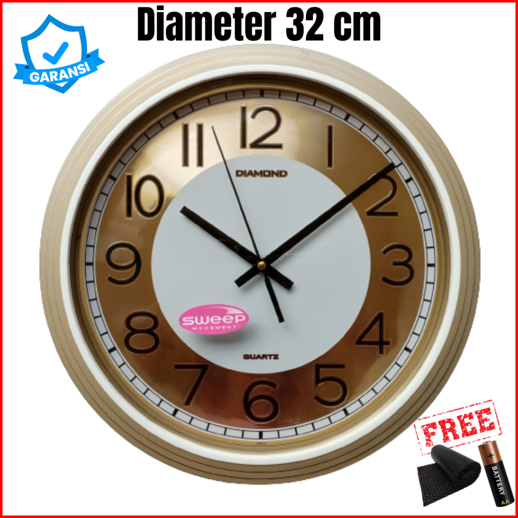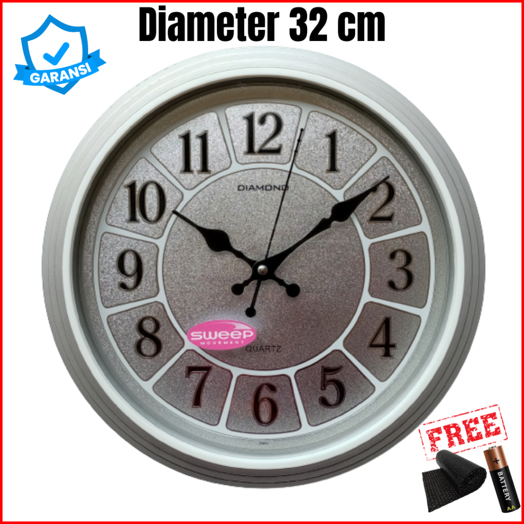 Jam Dinding Diamond 321 Series Diameter Jumbo 32cm Mesin Sweep Silent Tanpa Detak Black Silver