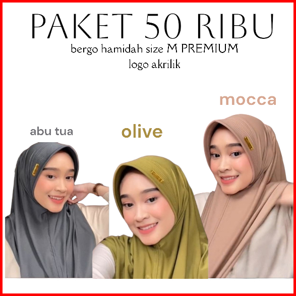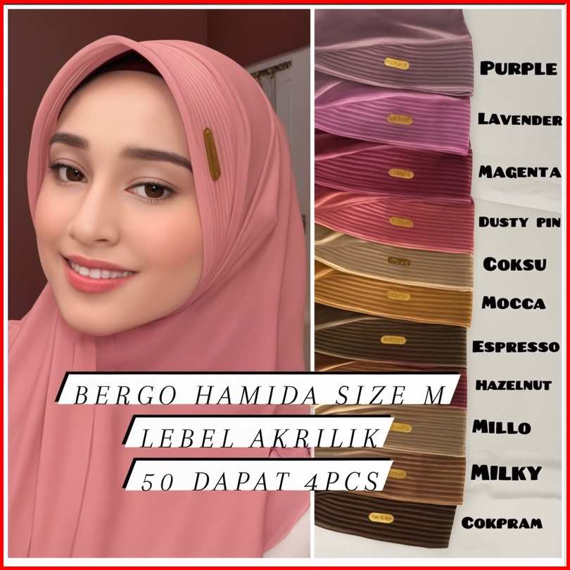 Bergo Hamidah 50rb Dapat 4pcs Bergo Hamidah Size M Lebel Akrilik By Haidar Hijab Premium