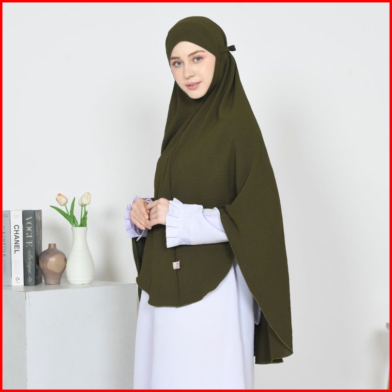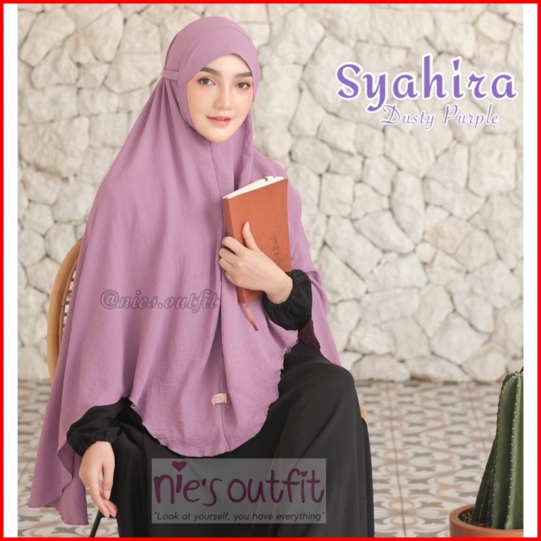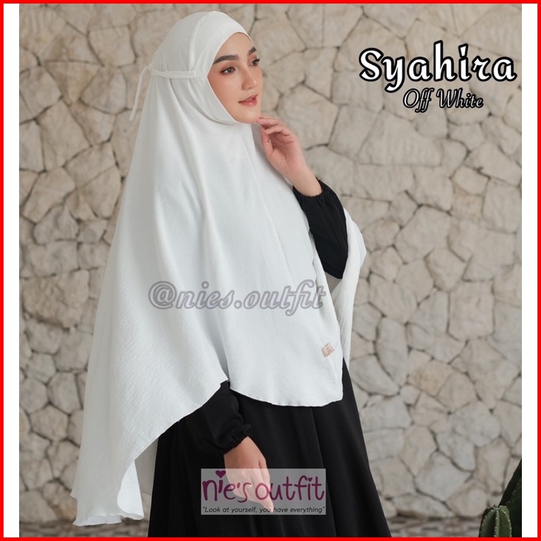 Hijab Umroh Haji Nies Outfit Khimar Syahira Kerudung Bergo Ikat Jumbo Bahan Crinckle Airflow Rayon Premium Fashion Musli