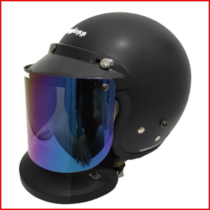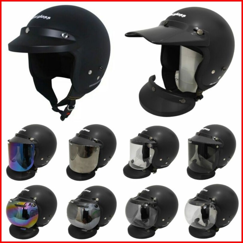 Helm+pet, +pet panjang, +Visor Flat Silver, +Visor Flat Pelangi, +Visor Flat Bening, Cembung Hitam, Cembung Bening, +Visor Flat Hitam, KC Cembung Silver