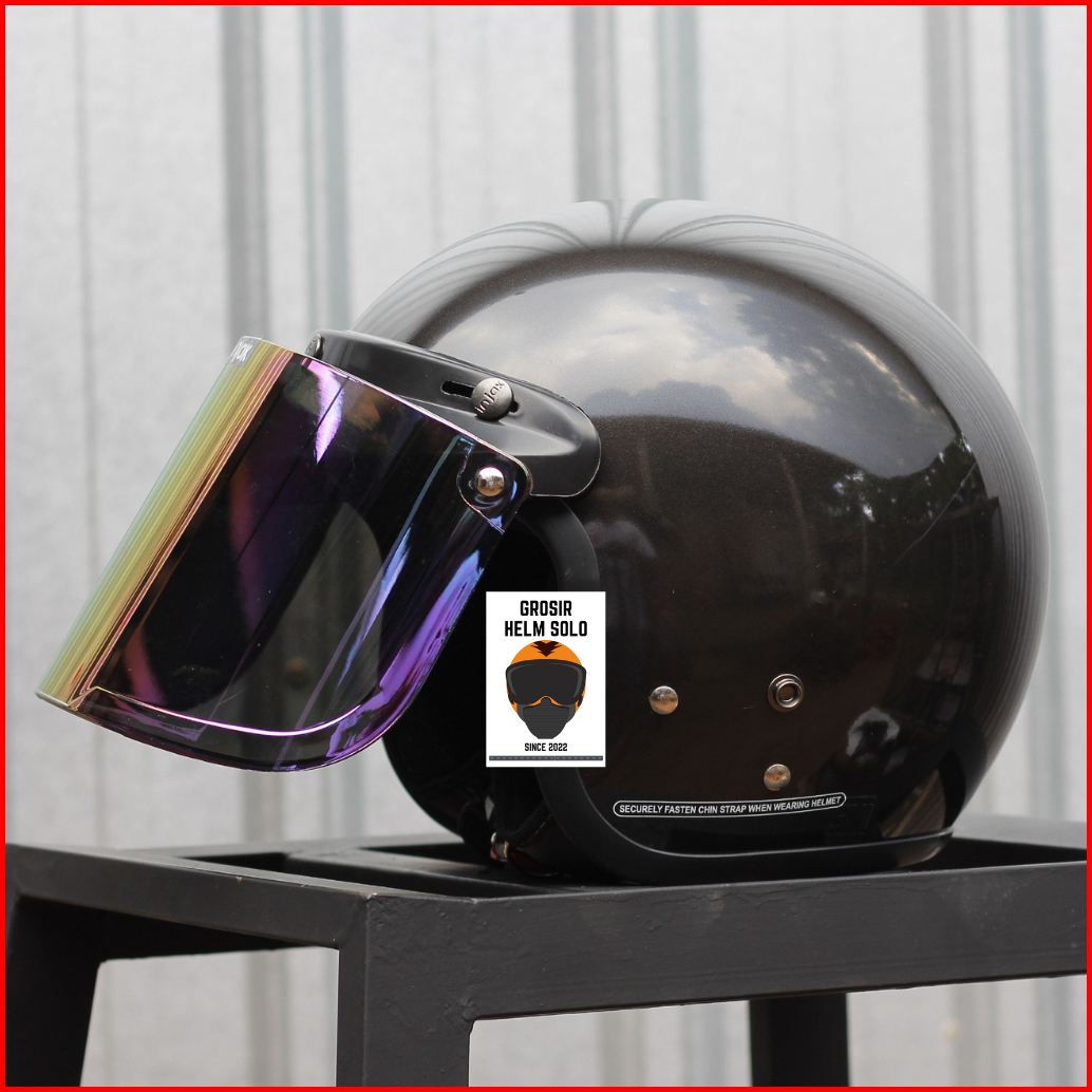 Helm Bogo Polos Dewasa Pria Wanita Warna Solid Terbaru Kaca Silver Pelangi Sni