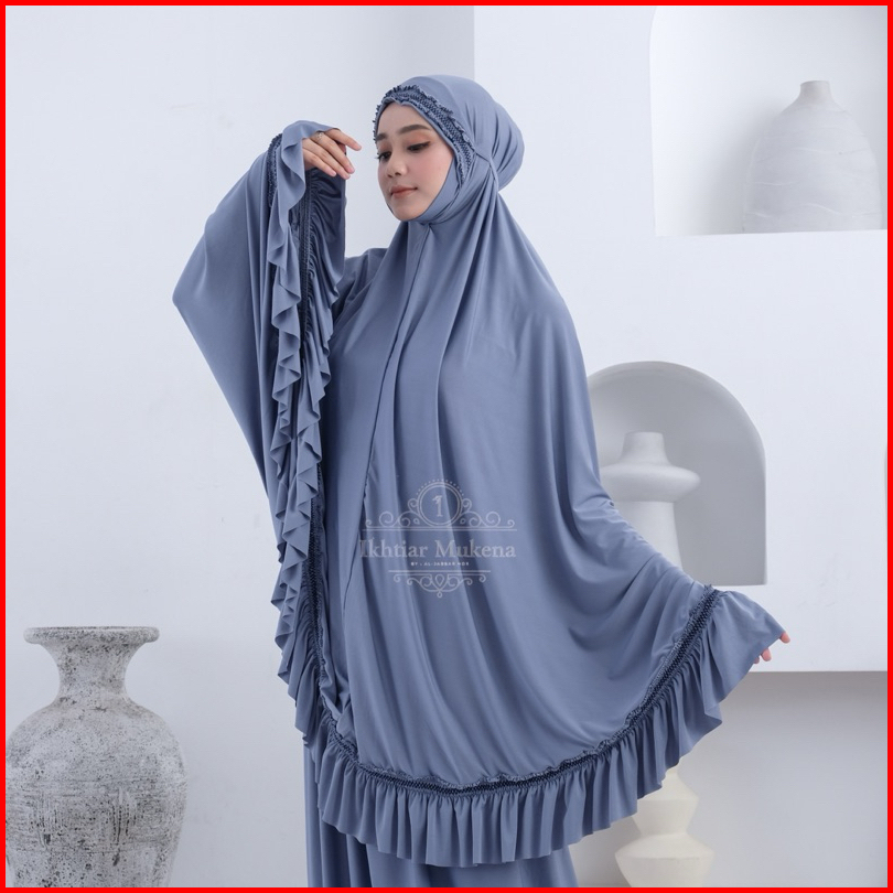 Mukena Dewasa Jersey Rempel Premium Menutup Dagu Syar I Malaysia Super Jumbo