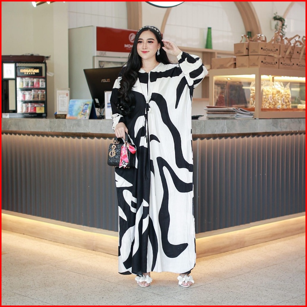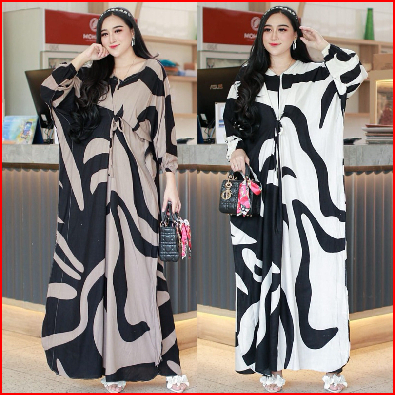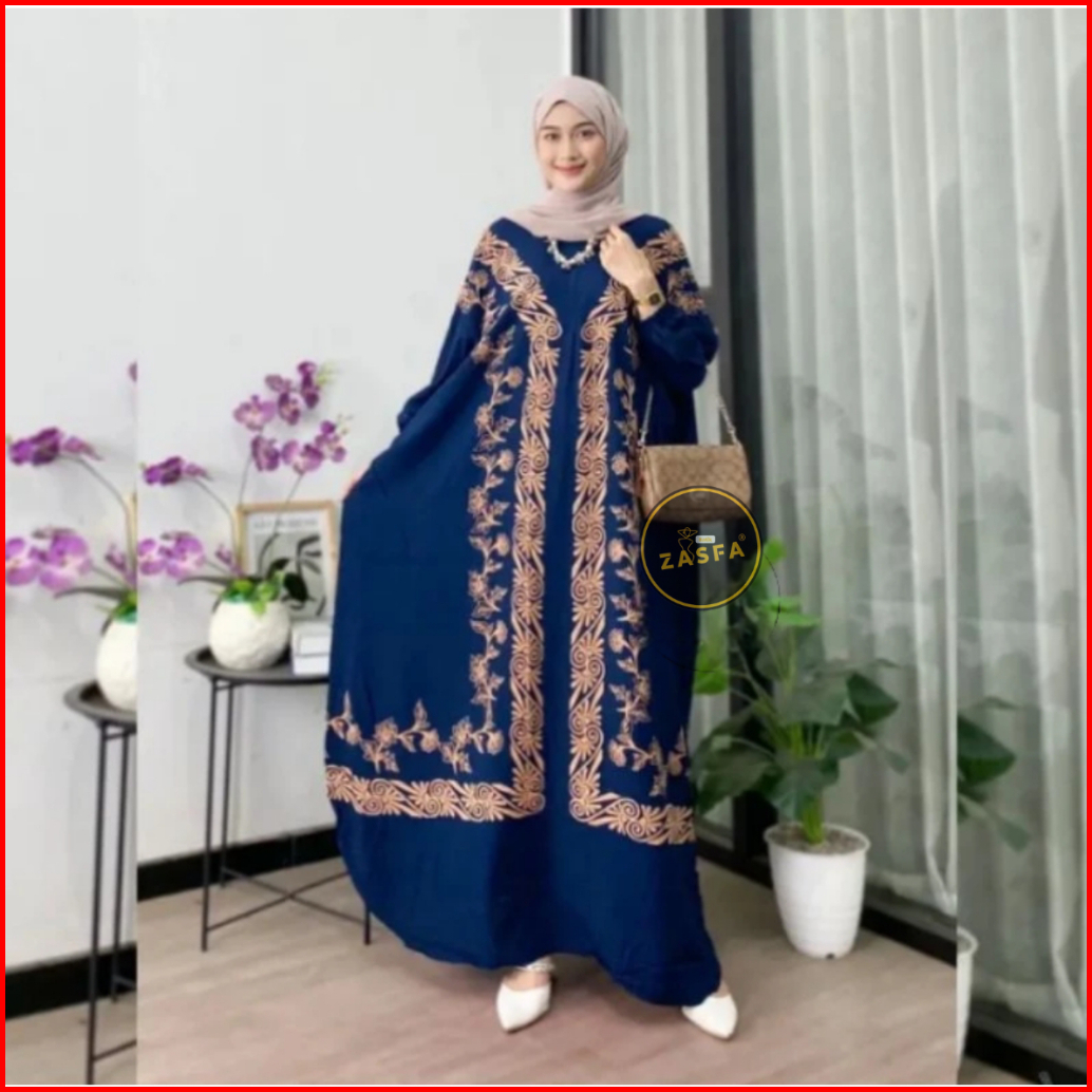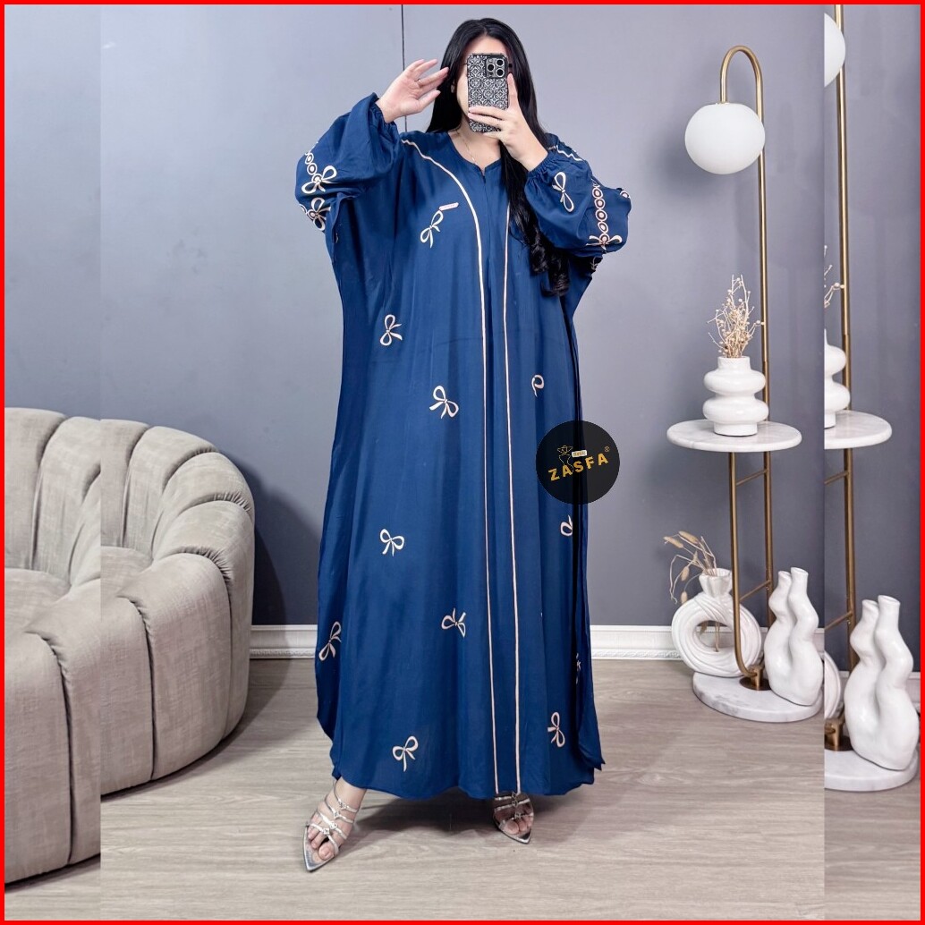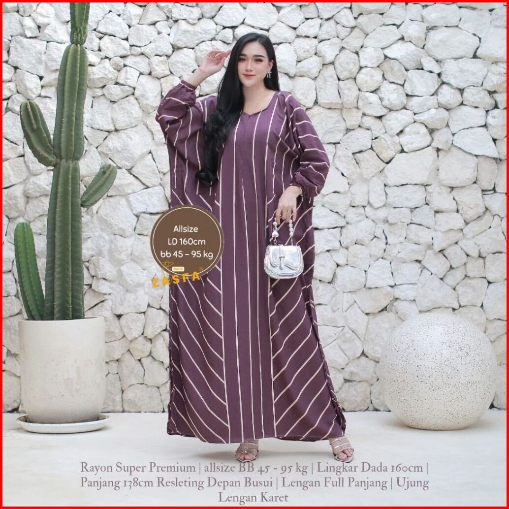 Zasfa Kaftan Syifa Rayon Super Premium Jumbo Ld150cm Busui Resleting Depan Lengan Karet