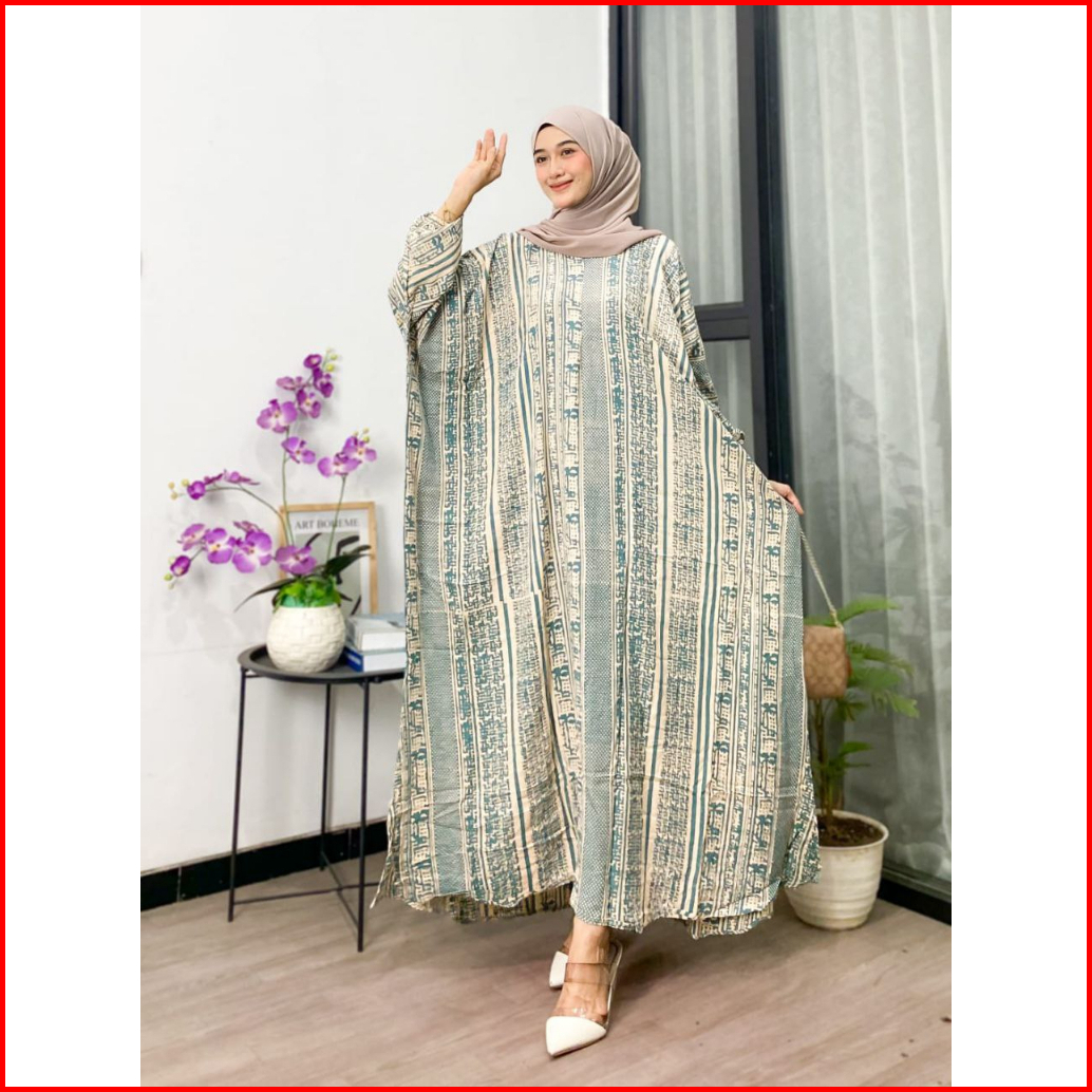 Kaftan Terbaru Rayon Premium Jumbo Busui Motif Pamela Baju Muslim Wanita Gamis Long Dress Kekinian