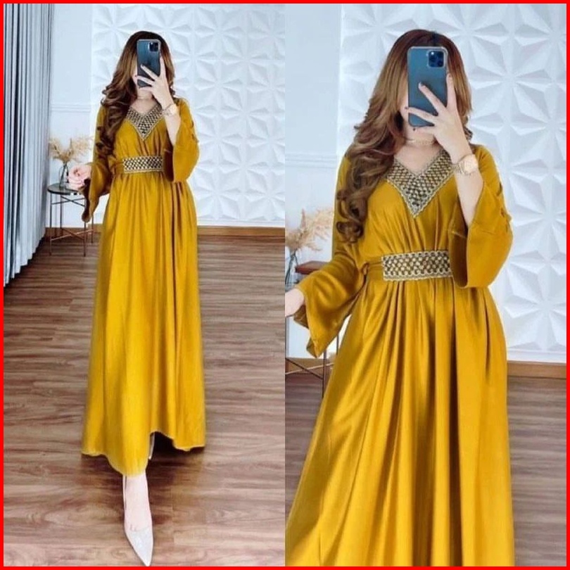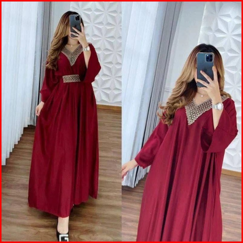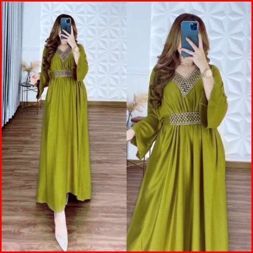 Kaftan Tsamira Jumbo Ld 160 Free Belt Bandana Rayon Premium Daster Kekinian