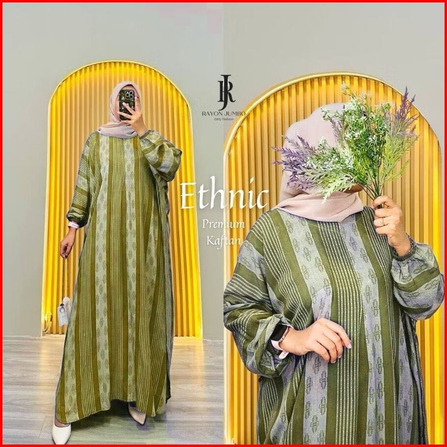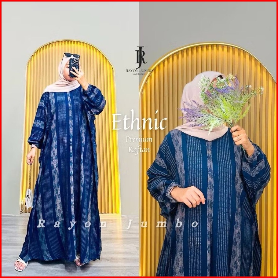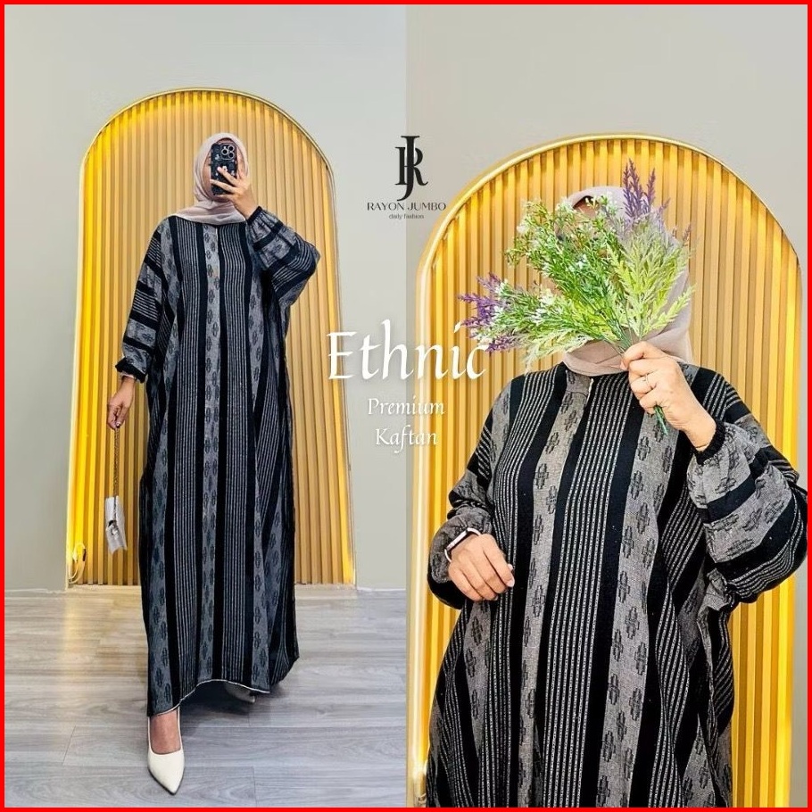 Ethnic Kaftan Rayon Jumbo Maksi - Kaftan Batik Motif Songket Encim Busui Lengan Panjang Gamis Kaftan