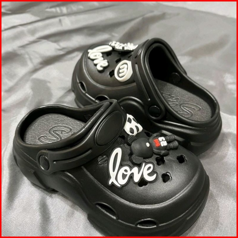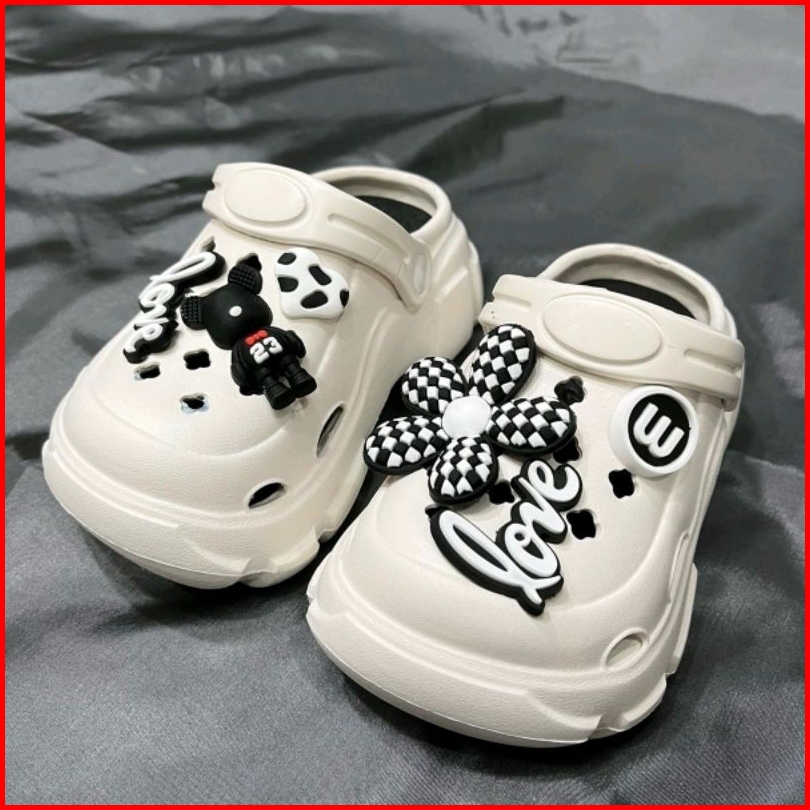 Gamaliel - Sandal Baim Anak Tinggi 5 Cm Jibbitz Love Boneka Bunga Catur X606-3s Sandal Anak Sandal Baim Anak