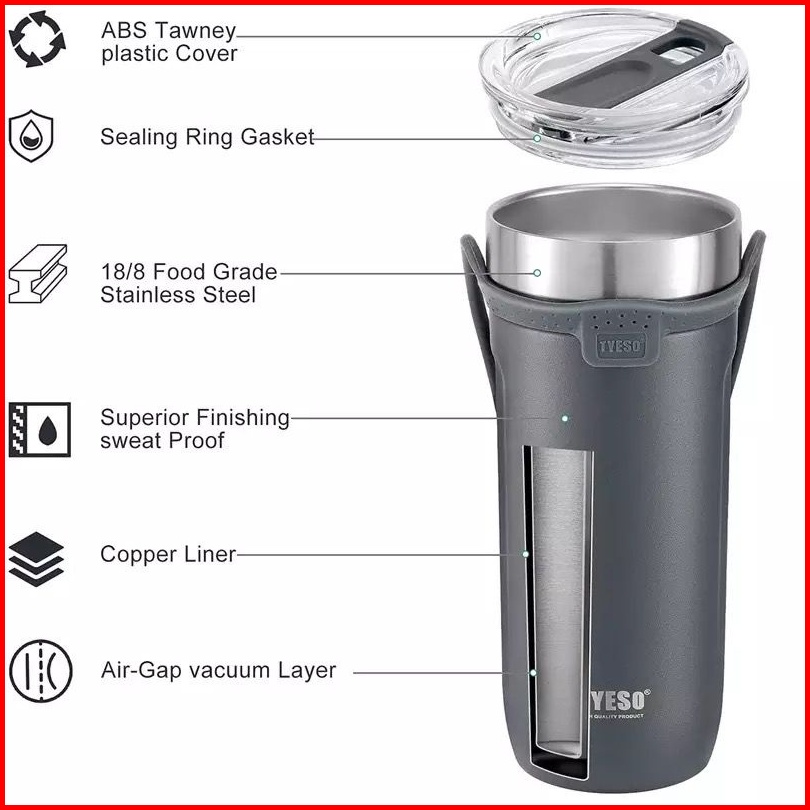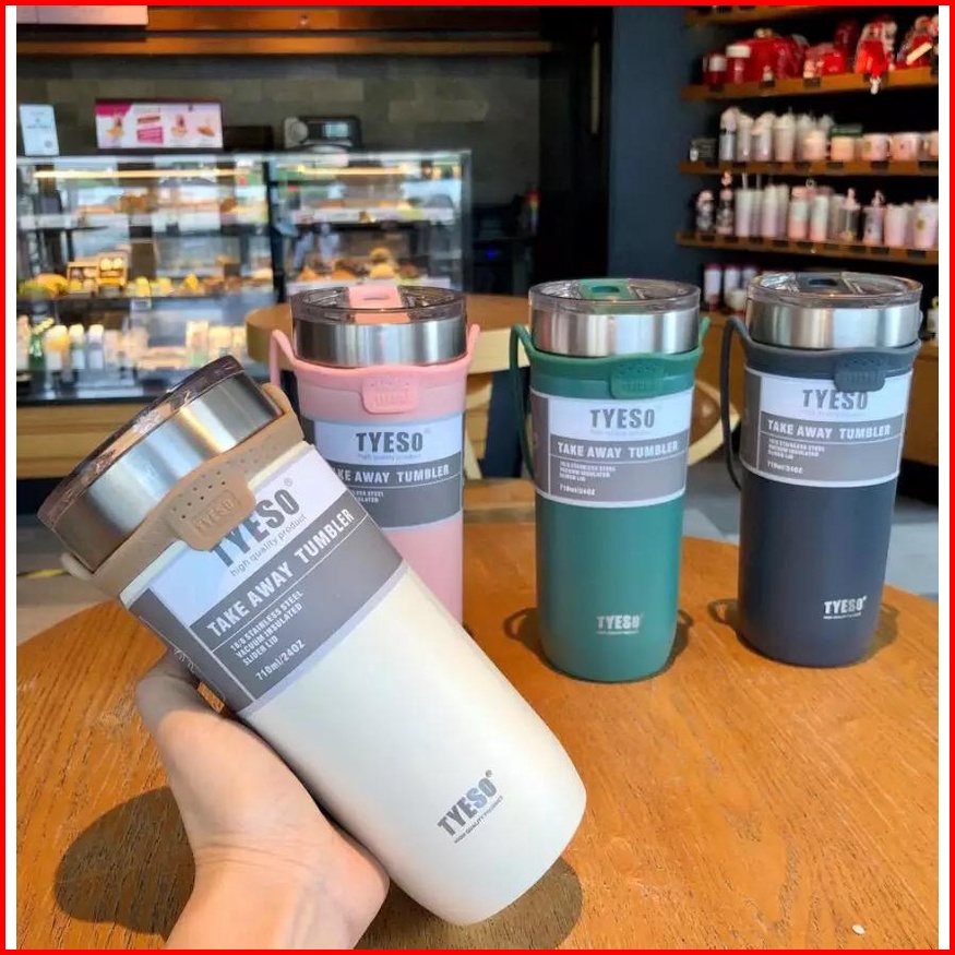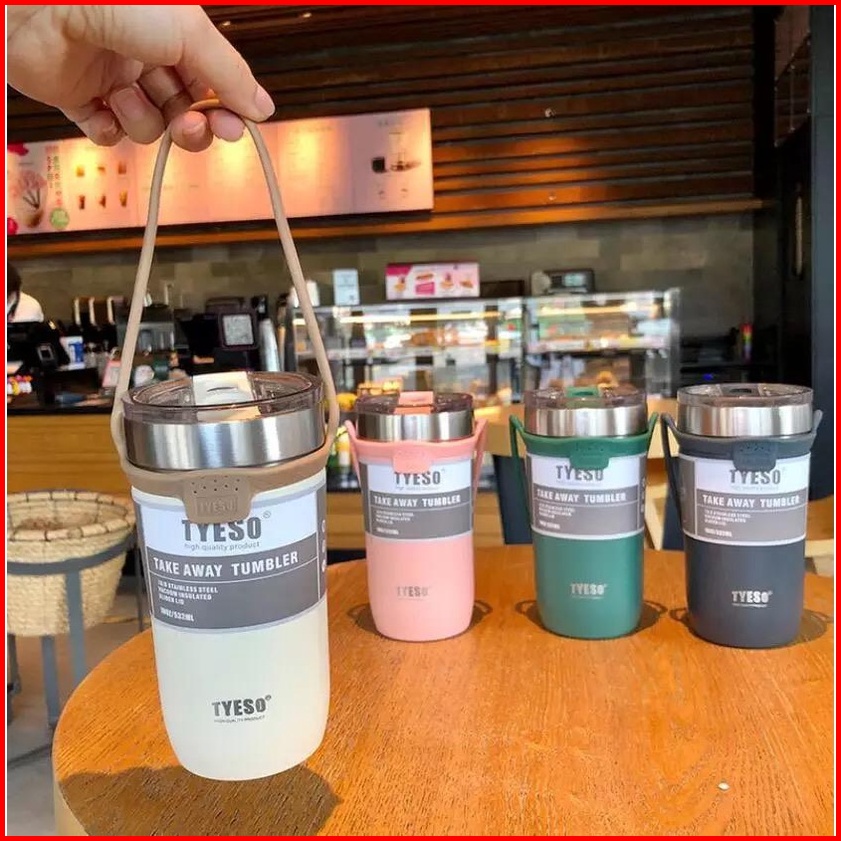 Tyeso Take Away Tumbler 100 Original Free Sedotan Double Vacuum Stainless Steel Coffee Thermos With Rope Handle Botol Mi
