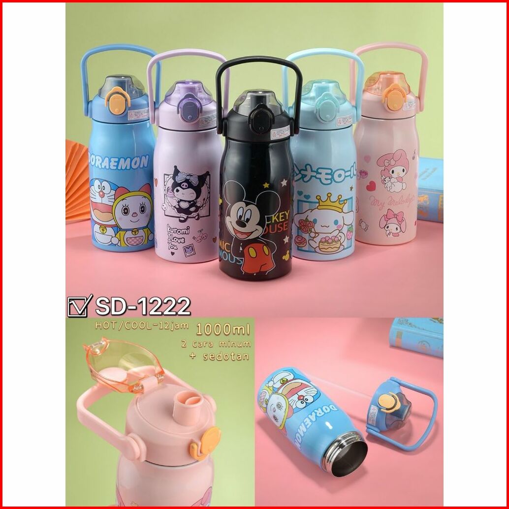 Tumbler Termos Tenteng Tombol Karakter Sanrio 1000ml Hot Cold Stainless Sus 316