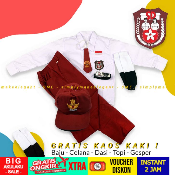 Setelan Super Lengkap Seragam Sekolah SD Laki laki Baju Panjang Celana Panjang
