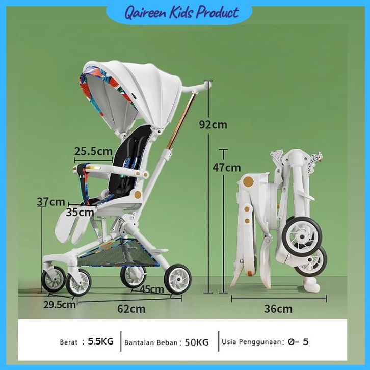 Mmflight Kereta Dorong Bayi Stroller Bayi Anak 2 Arah Lipat Traveling Cabin Size