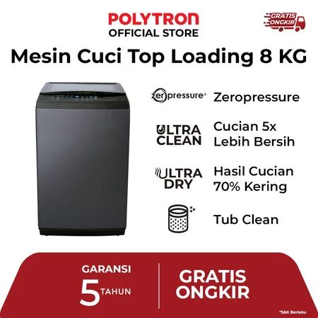 MESIN CUCI 1 SATU TABUNG 10 9 8 7 KG POLYTRON TOP LOADING ZEROMATIC LAGUNA SERIES HIJAB