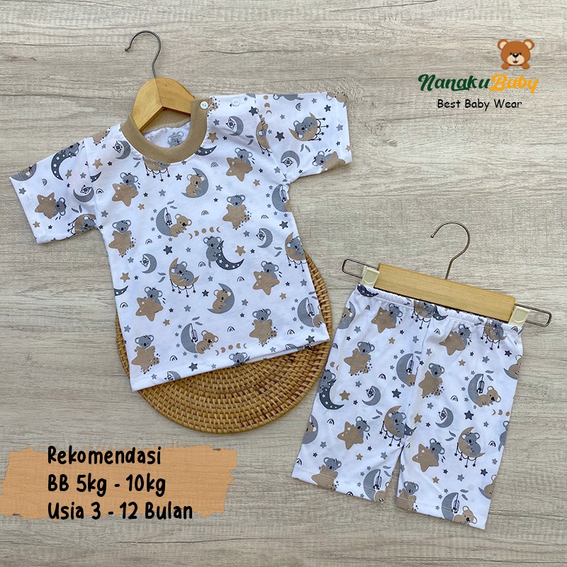 Nanaku Baby - Setelan Baju Bayi Laki Laki & Perempuan Model Tangan Pendek Kancing Bahu Usia 3-12 Bulan Motif Koala