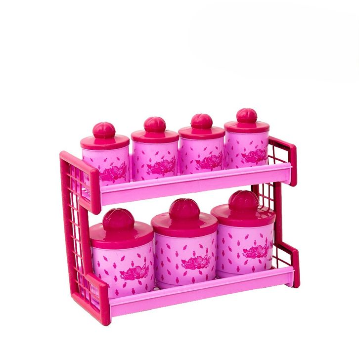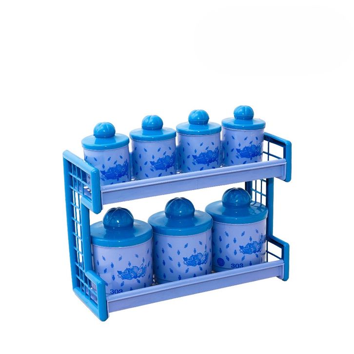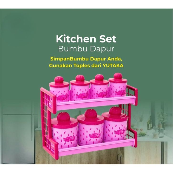 TEMPAT BUMBU DAPUR SET RAK 2 TINGKAT – ISI 7 TOPLES + SENDOK, ESTETIK & FUNGSIONAL / TEMPAT BUMBU DAPUR / KITCHEN SET